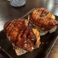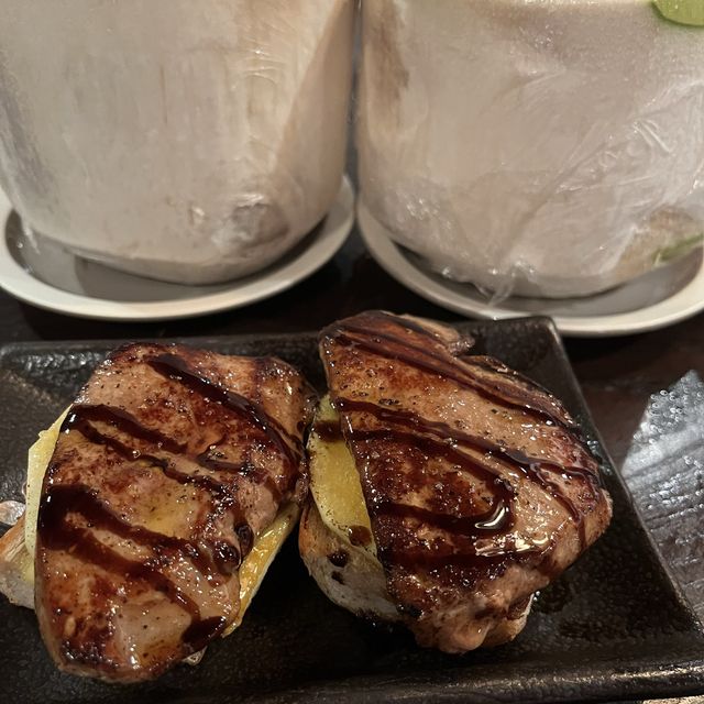 🌿 Herb garlic buns Large pieces of garlic bread, golden and crispy on the outside, enough vanilla and garlic, one bite, soft and fluffy inside Cumin Roasted Garlic Eggplant The eggplant is soft, the aroma and taste of cumin and garlic blend perfectly, and it is not too oily. If you want to eat spicy, you can order Sichuan eggplant🍆 Butter Garlic Baked Assorted Mushrooms The butter garlic flavor is rich, the mushroom portion is rich, the mouth is rich. Salt-roasted jade melon The palate is tender, slightly salty and very fresh. Caramel Green Apple Foie Gras Toast The portion is satisfying, the perfect blend of apple sweetness and richness of goose liver, caramel sweetness adds layering, a must! Grilled hand-fished squid whiskers Slightly browned on the surface, golden in color, the cuttlefish is crispy after roasting, and bouncy and fresh on the inside. Salt-grilled Wagyu Beef Tenderloin, Salt-grilled A4 Miyazaki Wagyu Both snowflakes are even and gluten-free, the beef tenderloin is smooth and tender, while the wagyu beef is more tender, melts in the mouth, grilled just right, enough fat, very satisfying. After eating the skewers, the fried rice we ordered arrived Eel fried rice The texture is fluffy, and there is a lot of eel meat. It's good! Remember to order fresh coconut The palate is refreshing, moderately sweet, and goes well with skewers. If you come to eat skewers and don't drink alcohol, it's perfect! Average spend per person: $400 BBQ Hall (Central) 📍Shop A, G/F, Anqing Building, 1 Anqing Tai, Central #centralfood #skewers #japanese #dinner #hongkongfood #food #hongkongshopvisit #restaurant #like #foodie #foodiehk #myfooddaily