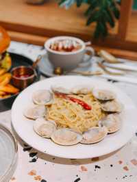 This western restaurant is located in the Soho area of ​​Central It focuses on multi-national cuisine and desserts The decoration of the restaurant is very stylish The seats are spacious and comfortable It is a great place for a date or dinner party 🔸Oyster Flat Pasta $188 The arrangement is very thoughtful, with d mussels surrounding the plate of pasta, very eye-catching. The mussels are fresh and plump, tender and completely free of sand. The flat pasta is smooth and bouncy, with just the right amount of saltiness, which is very tasty. 🔸Signature Beef Burger $155 The burger crust is toasted with butter, which is crispy and delicious. There are beef burger steak, cheese, onion, bacon, lettuce and other side dishes sandwiched in the middle. The main beef burger steak is also very juicy, beef flavor is rich, quite high quality. The fries on the side are fried to order, very crispy and delicious! 🔸Italian Cheese Potted Cake $138 At that point I really thought it was a potted plant, full of fun. It tastes actually tiramisu cake, the cake is just the right amount of sweetness, covered with chocolate powder, which goes well with the taste of the cake. 🔸Royal Chocolate $45 The chocolate flavor is very rich, and there are two marshmallows dipped in the chocolate. A small amount of marshmallows will be sweet after melting, essential for taking pictures! #CABLfoodreview_central 📍Le Jardin à Soho Shop E, G/F, 36-36B Stanton Street, Central #hkfoodpic #foodstagram #foodiegram #foodiepic #foodporn #foodpic #foodphoto #foodshare #dinner #centralfood #foodiehk #852food #lejardinasoho #foodielife #dinner #reviewshare #restaurant #foodreview #centralfood #fooddiary #cameraeatfirst