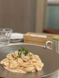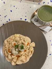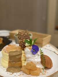 I've eaten the soufflé pancake countless times, why do I never get tired of eating it😂 Because it's really delicious, I believe many people have eaten it, because every time I go, it's so full. This time I tried the very special cat ear powder, which is made by adding mint sauce and large scallops, and salmon roe, the sauce is very tasty, with this powder goes well. Another main course ordered the beef sandwich, which was topped with a beautiful omelet with beef and cheese in the middle, which tasted good. The highlight is here, the soufflé pancake😍😍 This time I tried the English Earl Gray flavor, very rich, in addition to the Earl Gray cream, there is also a piece of cake and fern cake, and ice cream and cream, really satisfying. Also to introduce the drinks here, there are many choices, especially coffee, and hand-brewed coffee, with a choice of different origins, very fragrant. Fresh milk matcha is also good☺️ #pancake #Cafe
