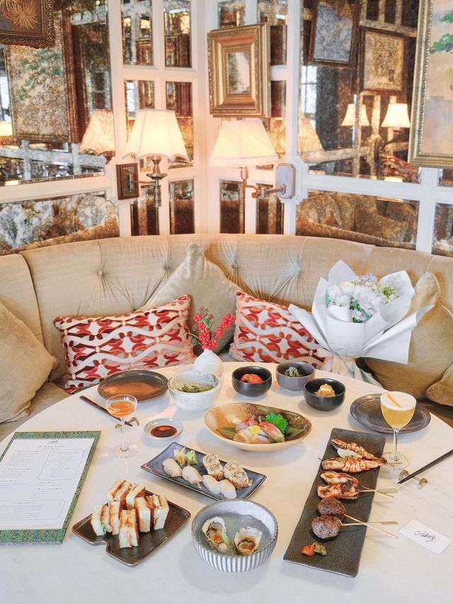 If you want to have a gathering with your besties for a photo op, there's an astonishing Japanese izakaya located in the Mandarin Oriental Hotel in Central. It's ranked as one of the top 50 bars in Asia. Not only can you enjoy the view of Victoria Harbour, but the British retro interior decoration also makes it an insane spot for taking photos. Remember to reserve a European-style sofa spot. The photo quality is top-notch with the super comfortable velvet texture, vintage paintings hanging on the walls, and a huge European-style mirror that gives you the feeling of traveling back to the 19th century Western countries.