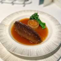 Yan Toh Heen Dinner Short Review It was the day to celebrate my sister's birthday Although I wanted to go to Tin Lung Hin (I really love Tin Lung Hin 🥰🥰) but the birthday girl wanted to try other and finally ordered Hin Tu Hin It's the daily menu 1. Grilled duck: This time I chose three dishes, the first of course, the skin, with three sauces - seafood sauce, Korean spicy sauce and osmanthus plum sauce, plus six side dishes - scallions, cucumber, green papaya, red pepper strips, grapefruit, pineapple, the second dish is duck lettuce wrap, and finally crispy duck rolls. All three taste very good, recommended 😋😋 but quite large portions will cover the heart ... 2. Garlic Chicken Bacteria Burst Wagyu: There are chicken mushrooms, garlic slices, radish with Wagyu beef together to fry, yes it is delicious ... but the Wagyu flavor I do not know if the garlic flavor is too strong and covered 3. Daqian black garlic barrel oyster pot, a little spicy, and too strong flavor, robbed all the oyster flavor 4. Calendula celery stir-fried refreshing vegetables: standard work 5. Mulberry Stewed Snails: Recommended! Full of fire, big and thick flower jelly, sweet snails 😋😋 It actually has a dinner package, due to pre-ordered sliced duck only to wait for the next time. Use K11 club Gold Member to get 75% off, discounted more affordable😋