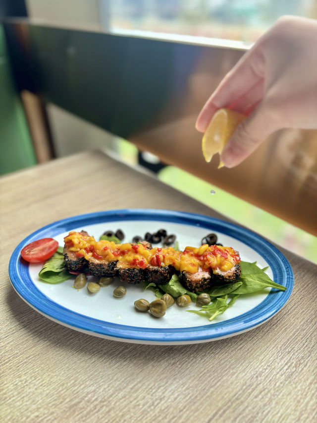 #Sign up for April Hotel Test Sleeper Harbourview Grill in North Point is just as its name suggests. From the restaurant you can overlook the sea view of North Point Pier🌅. A variety of dishes are also available here. This time I ordered tuna nuggets with mango chili sauce 🥭, herb roasted chicken pasta 🍝, Hawaiian pizza 🍕 and coconut milk curry fish rice 🥘. The appetizer of tuna nuggets served with mango chili sauce is crispy on the outside and tender on the inside. The delicious taste of tuna and the fresh sweet and sour mango sauce complement each other 🥭, the taste is excellent 😋. One of the main dishes, the herb roast chicken pasta, uses pesto sauce. The tender roast chicken 🐓 and the refreshing rocket blend well together. The whole dish has a very balanced taste, but it is a little greasy. The Hawaiian pancakes are topped with all kinds of Hawaiian-style ingredients 🍕, and the bottom of the pancake is crispy. However, if you can’t accept pineapple 🍍 on the pancakes, don’t order it (laughs). The coconut milk curry fish rice has a very rich flavor. Paired with rice, every bite is unforgettable. 🍽️Restaurant: Harbourview Grill 📍Location: Shop 108, 1/F, Harbour North Phase II, 123 Java Road, North Point #foodguide #weekendtrip #northpointfood