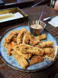 #HongKongAttractions There are also specialties for drinking wine in Lan Kwai Fong Want to go to Lan Kwai Fong to drink and eat, you might as well try this newly opened Spanish cuisine bar, usually eat in the bar always have no expectations, will not have too high requirements for the quality of food😂 Here is really a surprise ~ there are many food choices, high quality ~ and specialty cocktails 🍸 Fried Beef Tripe First time eating fried beef belly, it was really special so I tried it ~ It turns out that the fried beef belly is excellent with wine, crispy on the outside and bouncy on the inside, after eating one piece after another, the taste is good - there is also a little pepper and salt flavor, but also to eat in the bar is indeed rare ~ Grilled Truffle Bikini Recommend the classic Spanish snack sandwich, like toast is very crispy, sandwiched in the middle of black truffle, cheese ham, full of black truffle aroma very tasty ~ Srping Chicken The golden brown grilled spring chicken is very tender, the chicken breast is not sticky at all, and there is a juicy chicken oil aroma. Also baked potatoes and Spanish peppers are very tasty~ Tiramisu Very creamy, a must for those who like to drink sweet wine Volcano Passion fruit Vodka is great for taking pictures. The shopkeeper lit the fire and grilled the passion fruit on top. It's very eye-catching. The sweet and sour taste is very fresh Nuevo Tapas Bar 📍G/F, 8 Rong Wah Lane, Central λ(・ ิω・ิლ) ლ(❛◡❛✿)ლ ლ(・ ิω・ิლ) ლ(❛◡❛✿)ლ #foodie #food #foodpic #foodphoto #yum #yummy #delicious #tasty #camerafoodfirst #mobilefoodfirst #hkfood #hongkongfood #food #hkig #ighk #nuevotapasbar #spanish cuisine #bar restaurant #bar #lan Kwai Fong #central food #central