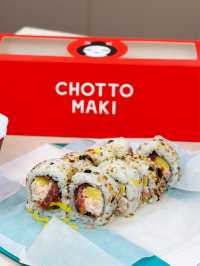 Located in the nostalgic Wan Chai, which is full of Instagrammable spots such as the Convention and Exhibition Centre, Hong Kong Arts Centre, Lee Tung Avenue, and the Blue House. Xiamen Street, near the subway station, is lined with culinary delights, including this Japanese restaurant that specializes in creative Japanese roll sushi. The restaurant has a spacious and comfortable environment with an open kitchen where you can watch the sushi being made. Tuna Crabstick - $65 One of the seasonal flavors. The freshly made rolls are filled with flavorful and firm tuna, sweet and juicy crab sticks, rich tamagoyaki (sweet egg), and crisp pickled cucumber, topped with savory rice seasoning, making it a rich offering. Flamed Salmon - $48 Three thick slices of salmon, rich and tender, with a slightly charred aroma from the torching. Mentaiko Chicken Wings - $42 Golden and crispy chicken wings, with thin, crispy skin that's not greasy, and tender, juicy meat stuffed with savory and mildly spicy mentaiko sauce. Yuzu Crab Roe Salad - $28 Crisp cucumber strips dressed with a sweet and sour yuzu salad sauce, sprinkled with crunchy crab roe. Jun. Tea House Matcha - $15 Also available are canned drinks and Japanese sodas. ----------------------- Chotto Maki (Xiamen Street) Address: Shop G, 33 Xiamen Street, Wan Chai