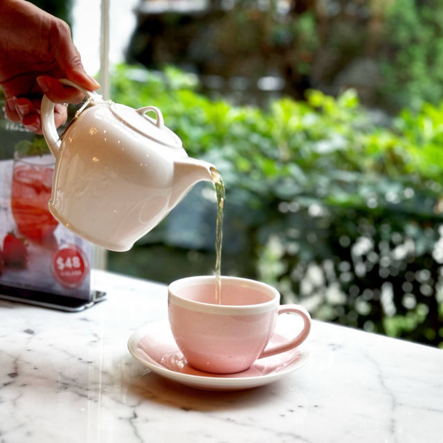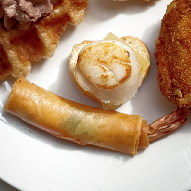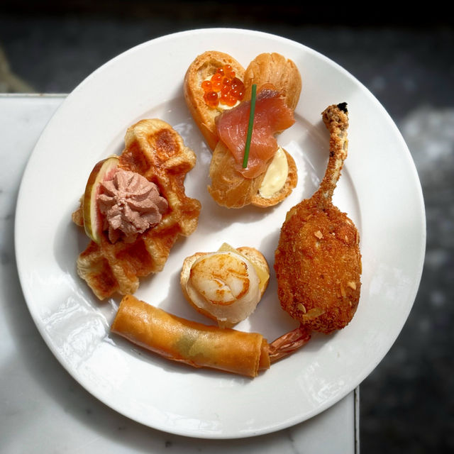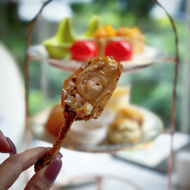 Stepping into this hotel for afternoon tea felt like entering a secret garden. Enjoying the afternoon here was truly delightful, and the excellent value for money made it even more commendable. This afternoon tea took place at CAFÉ A, located inside Hotel Alexandra Hong Kong. The restaurant features a Victorian palace style with dazzling crystal chandeliers. The luxurious yet elegant decor instantly captivated my eyes. Surrounded by lush greenery, enjoying this refreshing afternoon tea set was truly a relaxing experience for both body and mind. While savoring the afternoon tea, you can choose a drink from red wine, white wine, sparkling wine, or peach soda. My friend, who enjoys a slightly tipsy afternoon, chose the sparkling wine to indulge in. Having just recovered, I opted for the peach soda, which was refreshing and not overly sweet, making me feel comfortable and relaxed. We first tasted five delicious savory items, each quite substantial, making it possible to skip dinner. The pan-seared scallops were tender and flavorful, complemented by coconut pineapple jelly that highlighted the delightful seafood aroma. The smoked salmon puff with salmon roe and passion fruit cream cheese was a treat! The puff was filled with savory smoked salmon, offering a crispy yet soft texture, and the sweet and tangy passion fruit cream cheese added a remarkable flavor, showcasing the chef's thoughtfulness. The fig and foie gras mousse croffle was full of texture! The rich and flavorful foie gras mousse paired with the crispy croffle was very appealing. The last two savory items were also delicious! Freshly fried and very enticing. The crispy shrimp spring rolls were delightful, especially when paired with lime sauce, making them even more flavorful. The almond-crusted chicken wings stuffed with lychee were a unique combination! The wings were filled with whole sweet lychees, providing a juicy and satisfying bite. The lychee added a fragrant touch to the chicken, making it not greasy and exceptionally delicious. The desserts were equally delightful, with five options full of fruity aromas. The English scones with orange marmalade and clotted cream were always a soft and satisfying treat. The pomegranate mousse cake had a beautiful color, with soft mousse inside and a sweet and tangy pomegranate flavor that was delightful. The osmanthus lychee raindrop cake was definitely a representative of elegance! The smooth texture combined with the fragrant osmanthus and sweet lychee was irresistibly tempting. The pineapple madeleine cake was delicately cute! Although I've had many madeleines, adding pineapple was a first and felt very refreshing. The mango Napoleon was an absolute must-try, with crispy and flaky pastry layers filled with smooth custard cream and topped with ripe, sweet mango pieces. It was incredibly delicious. Lastly, the passion fruit panna cotta was a sweet delight! The top layer of tangy passion fruit sauce paired with the creamy panna cotta was very enjoyable. In addition to the initial special drink, the afternoon tea also offers unlimited coffee or tea! I chose the French Earl Grey tea with bergamot and French cornflower aroma, which was very comforting. The refreshing afternoon tea set is available from now until September 30th, priced at $397.8 for two on weekdays (original price $468 for two) and $421.2 for two on weekends and public holidays (original price $468 for two). The above prices include service charges.