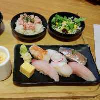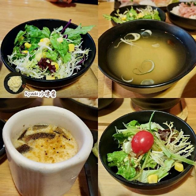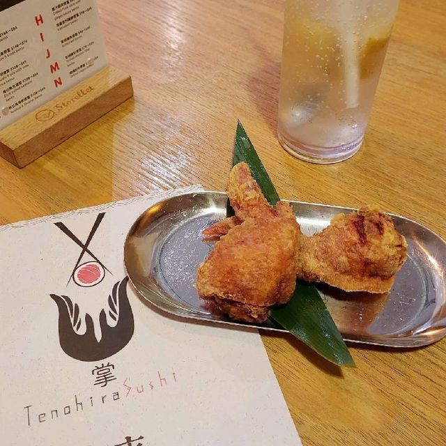 There are many different hidden restaurants in Kwun Tong Industrial Estate. This time I went to Block 3 of Camel Paint Building with my friends. Entering the restaurant is like going to Japan. The decoration of the restaurant is very thoughtful and beautiful. There is still a 20% discount on lunch set meals. It's really cheap I looked at the lunch set menu and chose the [Sushi Set $138] This set has 6 pieces of sushi, one of which is a chef-only sushi (different every day) wasabi down, mixed and eaten is really good Another choice was [Scrambled Egg Gillette Pork Fillet Set $98] There are 2 large pieces of Gillette pork fillet, the meat is very tender, with scrambled egg really goes well, the scrambled egg is great with rice, the rice is softer Two sets with salad appetizers (one with Japanese dressing, the other with kyuubi salad dressing), fragrant and smooth tea bowl steamed rice, mussel miso soup and dessert: chocolate cup ice cream Another additional snack [Mintaiko Chicken Wings (Two Pieces) $18] Hot mint chicken wings, fried to crispy outside and soft inside, stuffed with mint, spicy and delicious [Black Sugar Ginger Tea +$5] After drinking, the stomach warms up, perfect for winter; the other cup is [Salty Citrus Soda +$10] This environment is comfortable, chatting and eating is the best. The set meal is large and affordable, eating until I hug my stomach away Palm sushi Room U, 5/F, Block 3, Camel Paint Building, 60 Khai Yuen Road, Kwun Tong #palmsushi #tenohirasushi #sashimi #sushi #sushi set #sashimi #japanese #japanese cuisine #set #lunch set #chef's #sushi #japanesefood #lunchset #industrial shop #Kwun Tong food #Camel Paint Building Block 3 #hkfood