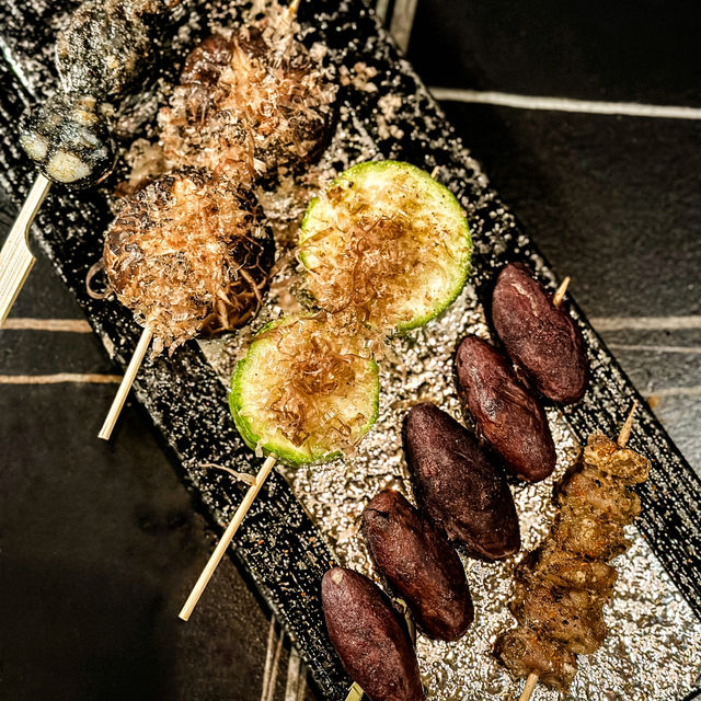 𓄧 𓄧 𓄧 There is a stylish skewer shop in the alley of Lan Du Street, Wan Chai - Jiu Chang Yao. There is a large bar in the shop, and there are not many other seats, but the skewers are really high quality! I recommend everyone to go! 𓍱 Chicken cartilage $38 𓍱 Chicken feet tendon $38 Chicken cartilage is crispy and has a greasy aroma. Chicken feet tendon has a smoky and chewy taste, and this part is also not common, so I personally recommend it. 𓍱 Secret sauce beef ribs $42 𓍱 Black Angus beef short ribs $88 The beef here is also very good, with fat and rich beef flavor. Especially the beef short ribs, must order! 𓍱 Broccoli sprouts $28 𓍱 Zucchini $28 For vegetables, I recommend the rare broccoli sprouts, which are fresh and green, and add a little salt to taste very good. The zucchini is thickly sliced ​​and juicy, sprinkled with a lot of katsuobushi, which is quite filling. 𓍱 Ink squid sausage $38 𓍱 White eel $68 The ink squid sausage is very delicious and quite unique. The white eel is a must-order recommendation! The white eel is very plump, the fish skin is roasted crispy, the fat is fragrant when you bite it, and it is boneless, it is really delicious! There is no shortage of various wines here, but if you are not a fan of alcohol, you can order monk fruit water ($14/bottle) for a sweet and refreshing taste. In short, the skewers here are surprising and the price is reasonable. And the location is relatively hidden, it can be regarded as a hidden high-quality shop, worth a visit! 𓄧 𓄧 𓄧 📍Shop 1, G/F, Lido Building, 2 Landau Street, Wan Chai #foodphotography #美食指南 #万仔美食 #串烧