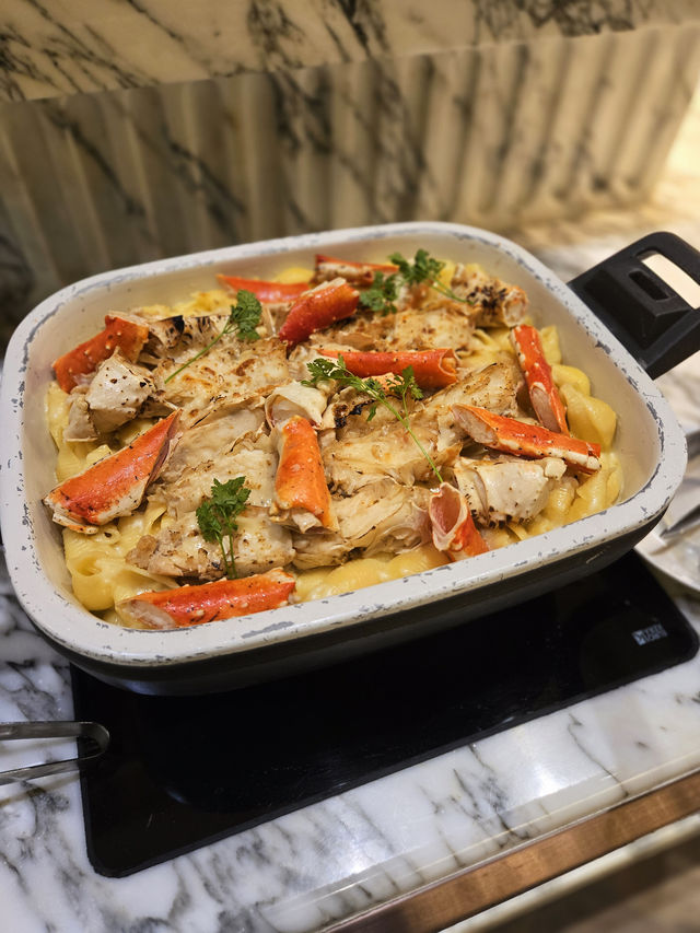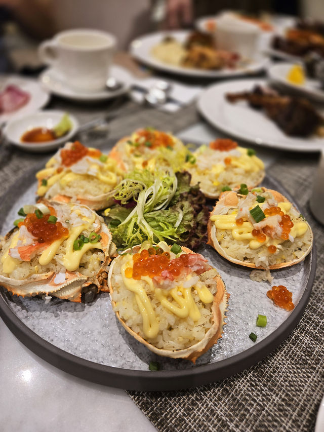 The seafood selection is impressive. Undeniably, when a large group of people plans to dine together, a buffet is the best choice. There's no need to worry about individual tastes or wait around; you can eat while waiting, which is ideal. Today's choice by my friend was the L'hotel Causeway Bay Harbour View. I've never been there before, so I was interested in checking it out. According to my friend, the hotel is not easy to find. However, you just need to exit at Fortress Hill Station Exit B, go up the footbridge, and follow the signs. The hotel is full of Instagram-worthy spots, making it easy to take photos and get likes. The restaurant is currently featuring a crab and abalone seafood theme. Walking around, you can see seafood everywhere. Cold seafood is a given, with snow crab legs, chilled shrimp, mussels, and jade whelks all present. The most popular item among Hongkongers is undoubtedly the oysters. You can take three at a time. When I was younger, I would make several rounds to eat a dozen, but nowadays, three are enough, and I need to save room for other delicacies! There are several types of cold cuts, seafood salads, and Thai-style boneless chicken feet to serve as interludes. A pleasant surprise was the bamboo shoots, which my friend kept going back for. The hot food selection here is more abundant than I expected. Western dishes like king crab mac and cheese and creamy carbonara abalone are rare finds, showing the chef's effort. The Chinese-style steamed fish was done very well, with tender meat and constant replenishment, so you won't be left with just fish bones and heads if you're a bit slow. Goose feet and shrimp roe pomelo skin are rare finds at a buffet. The shrimp roe pomelo skin, in particular, was a first for me at a buffet table, and it was of high quality. Make sure to try it. The buffet staples of roast beef and lamb racks are here, along with char siu, so you can enjoy both Chinese and Western flavors. The barbecue items include beef skewers, large shrimp, chicken wings, and our favorite grilled pineapple. The sweetness released from the grilled pineapple is incredibly enticing. Friends who enjoy congee, noodles, and rice won't be disappointed either, as there's abalone seafood congee, which is quite substantial. I usually skip the sashimi and sushi section, but seeing how fresh it looked, I grabbed a plate to share with everyone. I'm glad I didn't miss out. I almost forgot, each person gets a serving of abalone sashimi to stick to the theme. But speaking of sticking to the theme, it's not over yet, as each person also gets a serving of Japanese-style crab roe fried rice. It's very fragrant, and the crab roe is abundant. Even though I knew it was indulgent, I couldn't stop eating. The cheese selection includes both soft and hard cheeses, as well as the strong-flavored blue cheese. A few slices are enough before moving on to desserts. The dessert selection isn't particularly strong, but they do have egg tarts, and they're Hong Kong-style egg tarts, not Portuguese ones, which is nice. The quality of the cakes was surprisingly good. The blueberry cheesecake and chestnut cake are must-tries. For those with a sweet tooth, you can also try the matcha cake, pandan cake, and even the Napoleon cake. Finally, you have to have a cup of ice cream, as they use my favorite Movenpick. There are five flavors, including the relatively rare coconut flavor, which shows their sincerity. Coffee and lemon tea are self-serve. If you're worried about not being able to sleep after drinking them at night, you can opt for some juice. If you're a wine lover, you definitely shouldn't miss out, as both red and white wines are available for unlimited refills. Restaurant Information: L'hotel Causeway Bay Harbour View 32 City Garden Road, North Point, Hong Kong