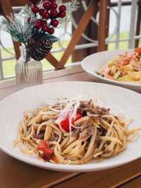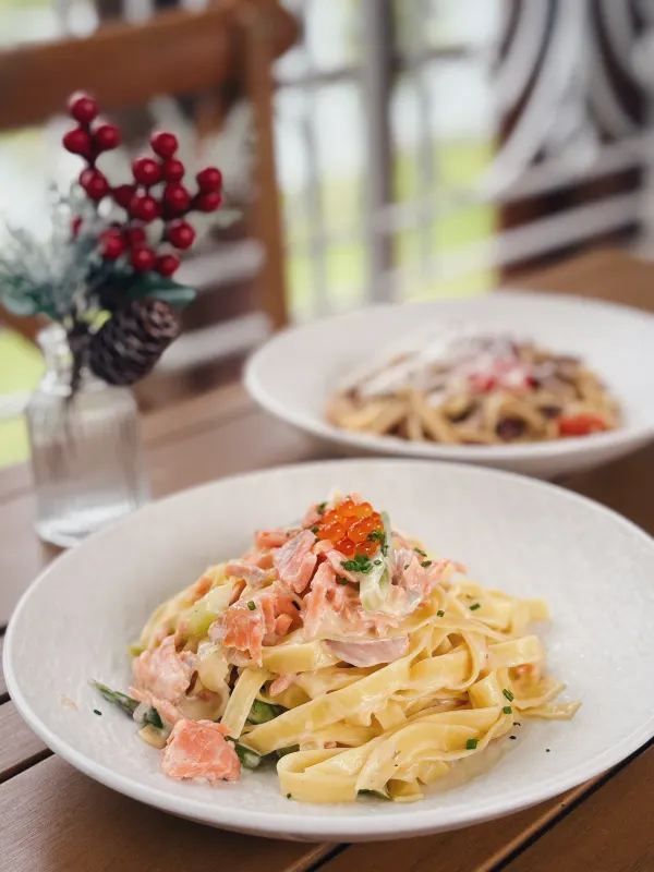 Christmas must find an atmospheric restaurant to celebrate 🥰 I went to this restaurant in Tai Po Little White Heron 😍 I chose to sit on the outdoor terrace ❤️ because their lake view is really beautiful 👍🏻 perfect for me to take pictures 😆 and they are very courteous ❤️ each table has a heater 😎 so even if the weather is colder do not be afraid 🥰 We ordered two lunch sets🥰 already included salad🥗 or soup🥣 and main course🍝 The restaurant that day is cauliflower soup🥬 It has a little pickled melon taste quite special😍 Slow Cooked Beef Short Rib Sukiyaki Linguine With Japanese Egg Yolk🐮 ($178) Slow cooked beef sauce full of sushi flavor The pasta is rich in flavor 😍 The spaghetti is also covered with Lan Wang Egg Yolk 🥚, which makes it smoother☺️ Fettuccine With Smoked Salmon. Asparagus. Cream Sauce🐟 ($178) Each spaghetti is covered with cream sauce🥰 There are many salmon, salmon caviar and asparagus on top😍 Rich taste❤️ Chamomile🍵 (with meal plus $15 lake view) The coffee has a faint rose scent 🌹 #CameraEatFirst #MobileEatFirst #FoodBlogger #HongKongFood #HongKongStoreVisit #HongKongTravelStrategy #HongKongTravelGood Places #HongKongFoodRecommendations #billow #TaiPo #Tai PoFood #Western #Spaghetti