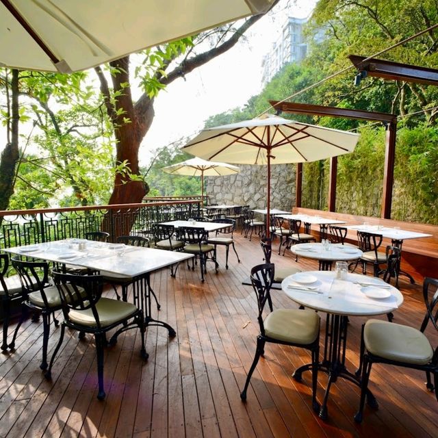 The food is decent but slightly overpriced. The venue is quite crowded. The outdoor patio had a big makeover, with new decking, much better quality tables and chairs, and colourful plants. It was very pleasant and relaxing to dine there surrounded by all the greenery. We tried their buffet option too. It's a wide spread of international and asian dishes, food replenished regularly. Drinks also topped up quite fast. Other than the limited alcohol items as part of the package, other premium drinks were chargeable. Overall we had a good time, the wedding set up and mic system worked perfectly. #victoriapeak#restaurants #localfood