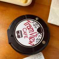 We took the iconic peak tram on our day for victoria peak. While the climb and then the time spent there was a different story. This cafe is by far the best view you could get of the peak team. It's got a decent menu, prices are okay. I mean the location makes things slightly pricey. The staff were so friendly and welcoming when eating here. Food was also pleasant, the Signature Breakfast is pictured which I ordered with a ginger hazelnut iced latte (very good!) The best view of the Peak Tram is from the large tables in the middle which were occupied so I sat at the back and could still see the tram as it came and went multiple times. #victoriapeak#peaktram #breakfast