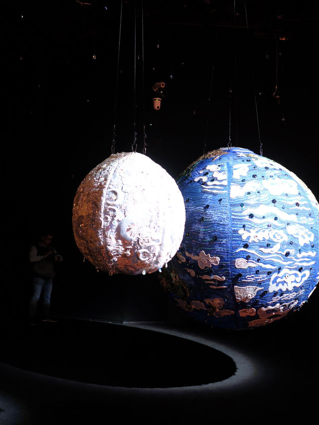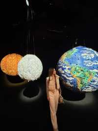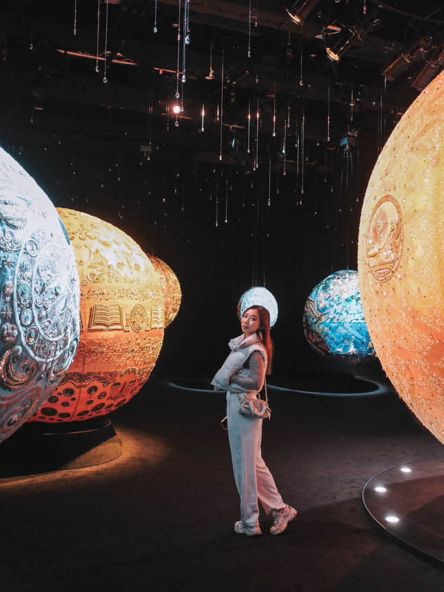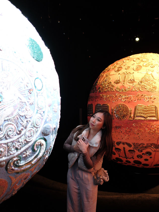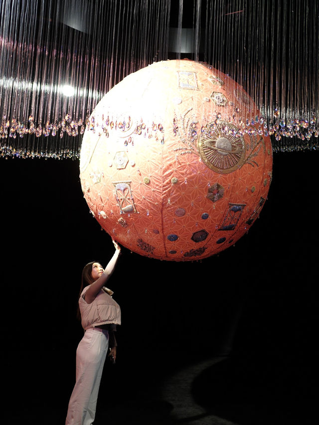 There is a stunning art exhibition at Taikoo Place🌑🌕 The artist used traditional Pakistani hand-weaving techniques to create a solar system🥹 The moment you step into the exhibition, you feel a slight shock, as if you have entered the galaxy🥹 Up close, the balls are adorned with bling bling embroidery, with different patterns made from various sparkling stones😙 📍 🗺️ ArtisTree and Taikoo Place Two, Taikoo Place 🕣 March 22, 2025 to April 27, 2025