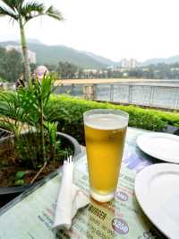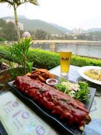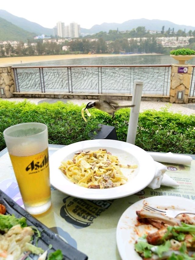 #HawaiianAirfareEvent About 20 minutes from Hong Kong Central? I think it took that long~ I never dreamed such a view would unfold, An absolutely stunning scenery appears.^^ There’s a beach in front~ The view was amazing. Dining in a place like this really feels like enjoying a proper rest. There were several restaurants~ But there was one place that was especially crowded. That place was Hong Kong Discovery Bay Zaks. The carbonara, ribs, and beer were all delicious, and it was a relaxing spot.