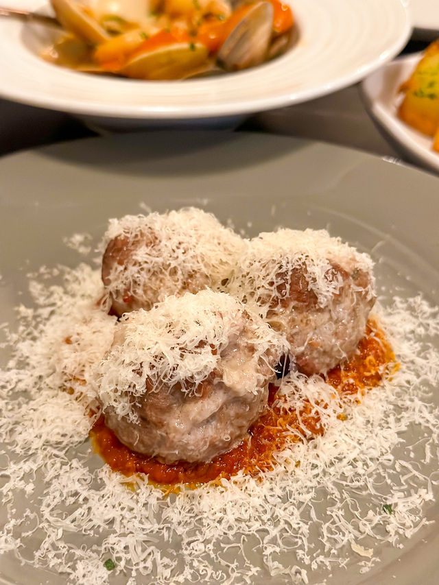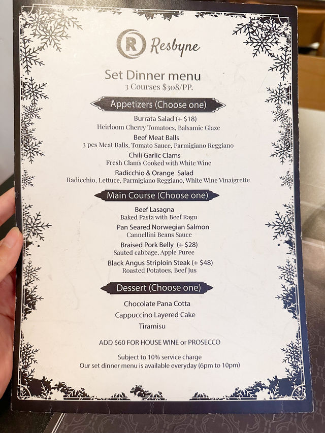 High-Quality Hidden Western Restaurant in Sheung Wan Resbyne Birthday month, a friend booked this Western restaurant to celebrate a birthday! The restaurant is small but quite comfortable to sit in. The set meal is just over 300 HKD per person with 3 courses, very good value. Appetizers Beef Meat Balls 3 pcs Meat Balls, Tomato Sauce, Parmigiano Reggiano The meatballs looked normal, the meat was springy, paired with tomato sauce and Parmesan cheese, overall the taste was good. Chili Garlic Clams Fresh Clams Cooked with White Wine Spicy garlic white wine clams, fresh clams with the sauce tasted great. Paired with toasted crispy garlic bread to dip in the sauce, the umami flavor was rich and delicious. Main Courses Pan Seared Norwegian Salmon Cannellini Beans Sauce The salmon was pan-seared to a golden crispy surface, tender and juicy, served with white bean sauce, delicious and flavorful. Black Angus Striploin Steak (+ $48) Roasted Potatoes, Beef Jus The Black Angus striploin steak was ordered medium (medium rare), the steak arrived pink, with a rich meaty flavor, texture similar to medium-well. Desserts Chocolate Pana Cotta Chocolate Italian panna cotta, super smooth and creamy with a strong milky flavor. Tiramisu Very fragrant and smooth. Overall quite tasty, quiet and comfortable for chatting 😌 Resbyne Shop 4, Po Lane, Sheung Wan