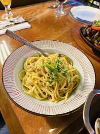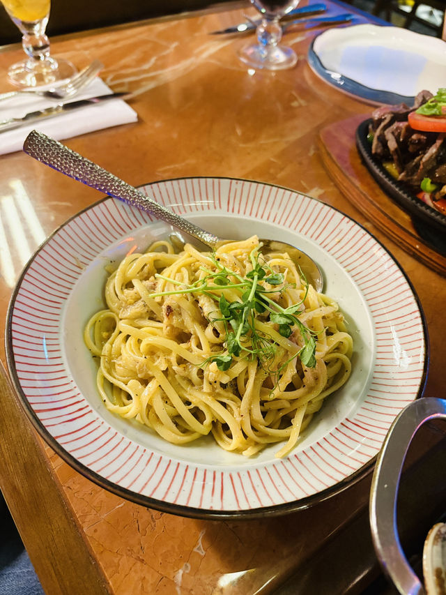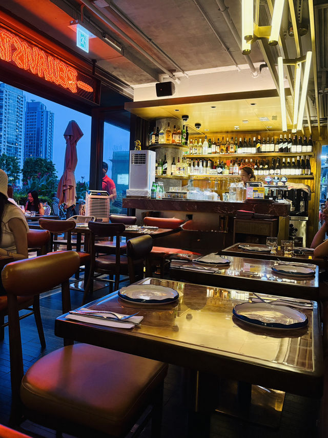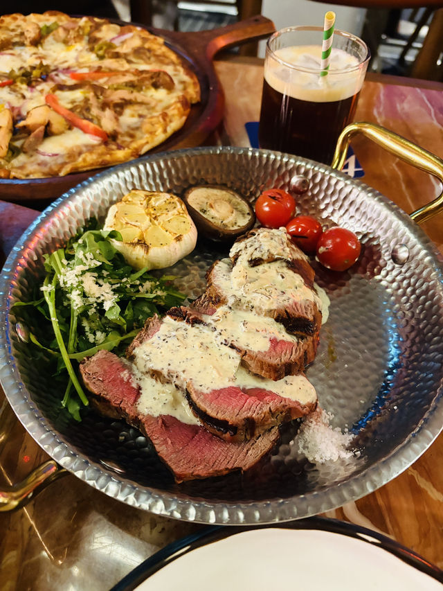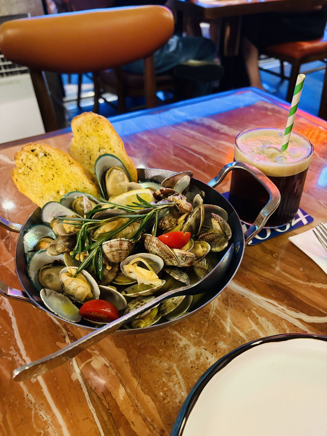 BELLAVISTA in Hong Kong offers a relaxed dining experience with exotic cuisine and seafood feasts, making it perfect for gatherings with friends or romantic dinners. Here's a look at the diverse and layered menu we tried: Appetizer Seafood The "NZ Mussels & Clam Bucket" ($187) features sweet New Zealand green mussels and clams paired with aromatic white wine—an absolute must-try! The "Crab Linguini" ($170) is rich yet not overwhelming, and pairing it with a Mango Smoothie ($75) adds a refreshing touch. Impressive Main Courses The "NZ Grain-Fed Beef Tenderloin" ($338) cooked to a perfect medium rare is tender and flavorful. The "Mix Fajitas" ($150) bursts with Mexican flavors and is wonderfully complemented by sour cream. Snacks and Drinks The "BBQ Chicken Pizza" ($168) boasts a smoky aroma, enhanced by rosemary seasoning ($75) for added depth. End your meal with a "Blueberry Smash" and an Iced Americano ($40) for a satisfying finish. From ingredients to cocktails, BELLAVISTA pays attention to every detail, making it a top choice for high-value dining in Hong Kong!