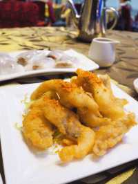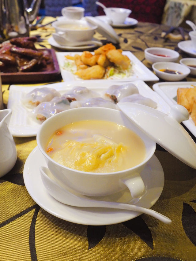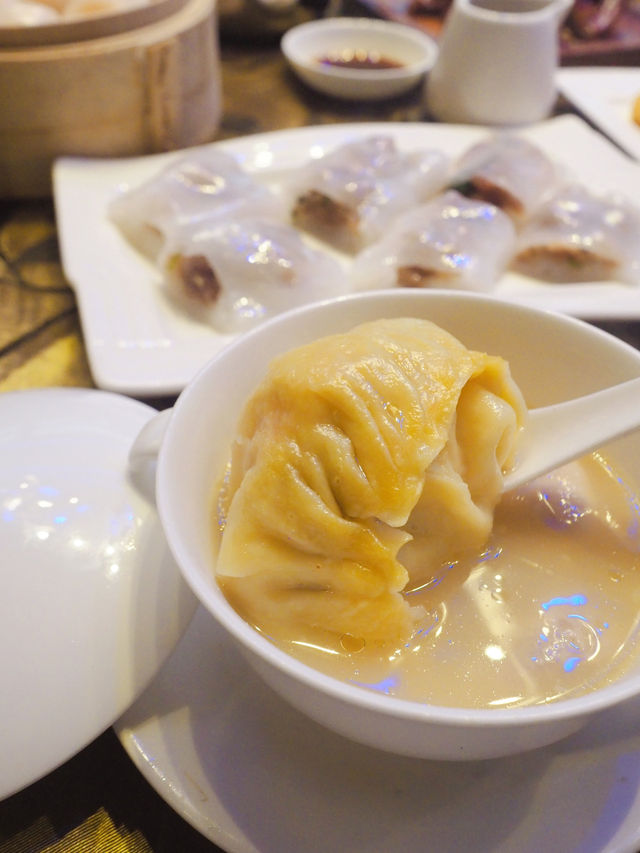 Spent a holiday with my family at the Star Seafood Restaurant in Sha Tin Courtyard by Marriott 🫖 to enjoy dim sum 🥢. As recommended by TVB Weekly, this is truly a top-notch wedding banquet venue! The decor is luxurious and grand, with elegant blue-lit ceiling lights that make it a perfect spot for photos 💗. The lunch menu offers a wide variety of dim sum, all handmade with generous portions and authentic flavors 🥟. They also serve specialty dishes, noodles, rice, and business set meals, providing plenty of choices. 🌟 Signature Pepper Soup Dumpling A must-try! The large dumpling bursts with rich and fresh flavors in every bite. The soup is the highlight—piping hot, aromatic with pepper, and slightly spicy. I even finished the entire bowl of soup. 🌟 Snow Crab Stick Cheese Spring Roll Crispy spring rolls filled with gooey cheese and crab sticks—sinfully delicious and impossible to resist! Perfectly fried to be crispy without being greasy. Be sure to eat them while they're hot for the best taste. 🌟 Roasted Whole Prince Pigeon The Prince Pigeon is larger than expected, with crispy skin and tender, flavorful meat. 🌟 Salt and Pepper Bombay Duck Crispy on the outside and tender on the inside, the fish is soft and flavorful with every bite, enhanced by the aromatic salt and pepper seasoning. 🌟 Crystal Shrimp Dumplings The translucent dumpling skin is thin yet firm, encasing fresh and bouncy shrimp. Each dumpling is generously sized and satisfying. 🌟 Cilantro Char Siu Rice Rolls The rice roll skin is thin and silky, wrapping around char siu slices that are perfectly balanced between lean and fatty, with a sweet honey glaze. The addition of cilantro adds a unique flavor. 📍 Star Seafood Restaurant Address: 1 On Ping Street, Sha Tin, Hong Kong, 1/F, Courtyard by Marriott Hong Kong Sha Tin (MTR Shek Mun Station, Exit C)