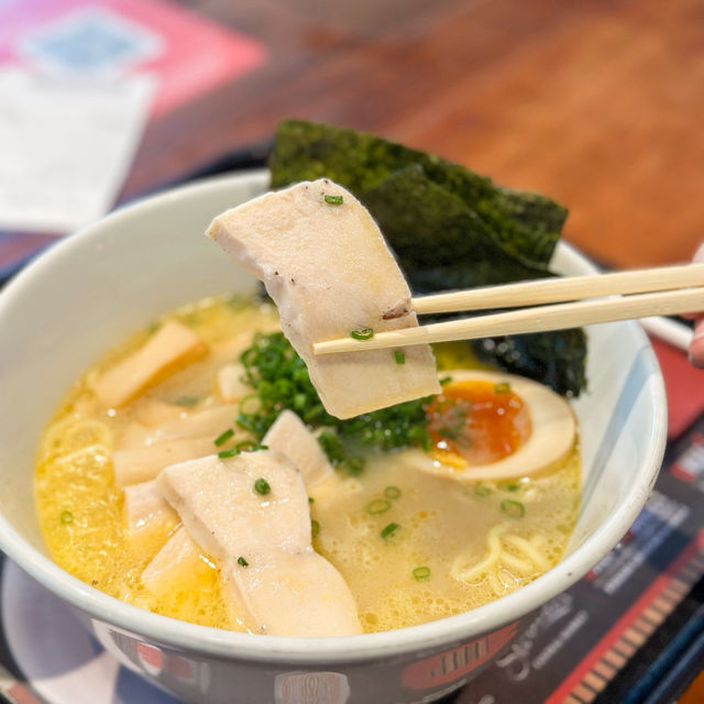 Takeroku Ramen in Wanchai recently opened a branch in the Central Market, on the ground floor of the food court. This time I went to work in Central and finally tried it😆 Takeroku Ramen comes from Hokkaido. I chose the signature Wagyu Beef Salt Sauce Ramen🍜 There are 4 slices of Wagyu, the oil is quite beautiful, the beef fat melts into the soup, making the oil flavor of the salt and sauce soup more layered! The soup is clear, not the kind of very strong dark sauce ramen🍜 Friends who don't like to eat too strong can choose this. My friend ordered Nagoya Chicken White Soup Ramen🍜 The soup is milky white, smooth and sweet, and the chicken breast is very soft. For snacks, we ordered black pork dumplings and chicken wings. The dumplings are excellent, the bottom is fried very crispy😋 Wagyu beef salt soy sauce ramen Nagoya Chicken White Soup Ramen Black pork dumplings Tang Yang chicken wings 📍TakerokuRamen (#CentralFood) Shop G11, G/F, Central Market, 93 Queen's Avenue Central, Central #TakerokuRamen #ramen #restaurant #Japanese restaurant #Japanese cuisine #Hong Kong Japanese cuisine #Central #Central Japanese cuisine #Ramen #Hong Kong Food #Hong Kong Shopping #Hong Kong Travel Guide #Central Food #Hong Kong Travel