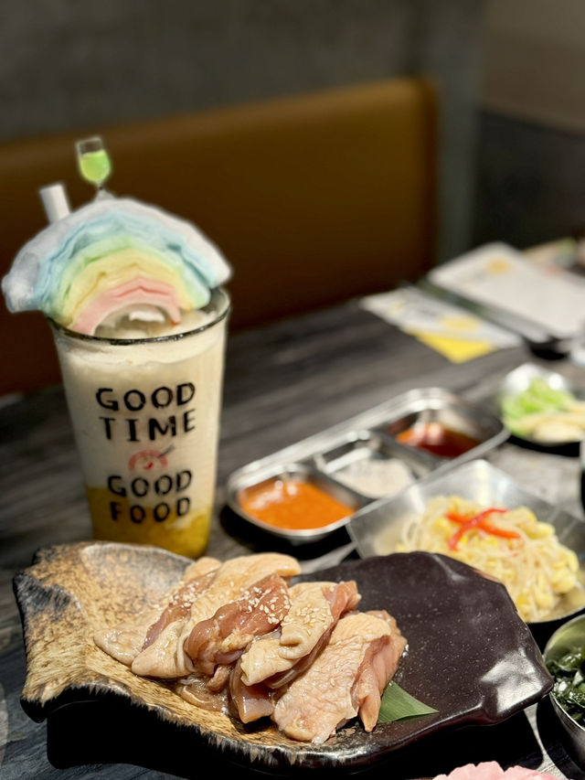 This restaurant focuses on barbecue, and there is a little kids play area for the whole family. While the adults are eating the children can play with the rides. We ordered thick-cut pork belly, which is thick and roasted until the surface is golden brown, rich in fat and fat but not greasy. The restaurant is very courteous to offer lettuce, kimchi, garlic slices and other ingredients, wrapped in lettuce grilled pork belly, plus some kimchi and garlic slices, one bite, rich and Korean flavor. Next came the Incheon eel, which had a crispy crust after grilling. The meat inside is tender and the sauce is moderately salty and sweet, which is very tasty. And the king beef ribs I think the most delicious 😋 beef ribs meat tender and juicy, very fragrant. The pear-juice ham is marinated very well with a hint of pear-juice sweetness. Additionally, we ordered the Sprint to the End Little Sports Car: Kids’ Meal with Corn Bean Curd Seaweed Rice, Broccoli, Ham and Fried Golden Shrimp. The children's meals are designed with care and cute. Finally, there is dessert and drinks. Mango bun iced Mango flavor is rich and refreshing. The Cloudy Marshmallow Mango Special is eye-catching, with a large fluffy marshmallow on top and a sweet mango specialty at the bottom. It tastes fresh and moderately sweet. 📍炑八 Korean Grilled Family Restaurant 2/F, 90 Hong Tu Road, Kwun Tong #Kwun Tong #Kwun Tong Food #Parent-Child Restaurant #Barbecue #Barbecue #Kids Meal