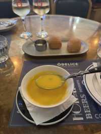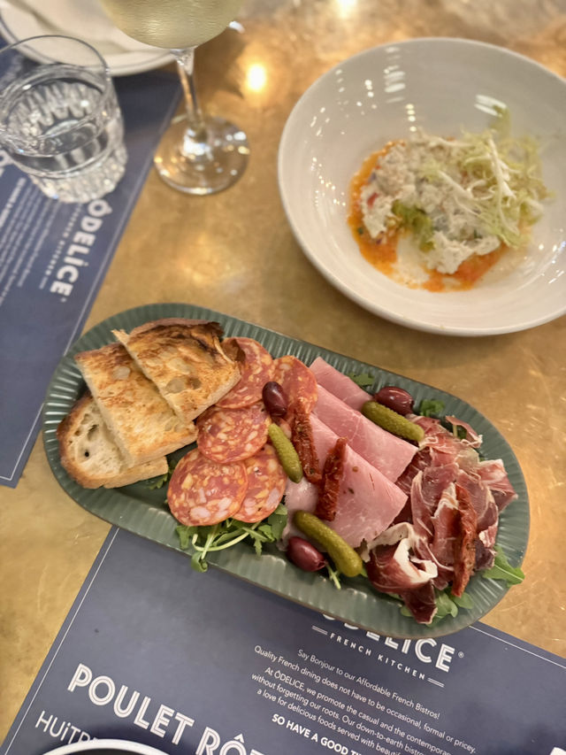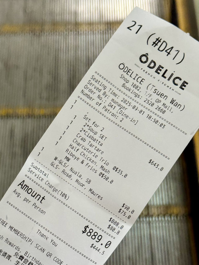 Odelice! (Tsun Wan)📍 Shop 1002, 1/F, Hai Noi Shopping Centre, 100 Tai Ho Road, Tsuen Wan A few days ago, I was walking to the Sea Love Shopping Center with my husband. When I walked to the first floor, I saw a Western restaurant "Odelice!" with golden decorations and matching ball lights. Dinner set for two HK $ 558, feeling in a bistro in the French streets and alleys, will not have the restraint of a high-end restaurant, but more leisurely, and smell the aroma of the dishes and attract me into. Black and white interlaced street tiles, matched with the wall, French street themed hangings and a row of red and white wine for enjoyment, matched with the dark yellow atmospheric ball lights, very romantic. Dinner set for two includes: soup + 2 small plates + 2 main courses. The bread was very soft, crispy on the outside and soft on the inside, served with a whole piece of wicked butter, very mouth-watering and smooth. Soup: Pumpkin cream soup, full of pumpkin puree with creamy flavor, thick is full of pumpkin flavor! Beat until fine, high quality. Crabmeat Avocado Tatar: Crabmeat: elegant marine freshness. Premium crab meat comes with a natural, light sweetness that is the cornerstone of the taste of the whole dish. Ripe avocados carry a unique, mild nutty sweetness that complements the freshness of the crab meat without stealing the limelight. The strong citrus acidity of lemon juice instantly activates all taste buds, breaking the “mushyness” that seafood and avocado may bring, making the taste immensely refreshing, through and appetizing. At the same time, sourness is also key to preventing oxidation of avocados. Frozen Meat Platter: French ham: softer meat, sweet and aromatic; Spanish ham: oily, naturally sweet. Served with homemade crispy inner soft sourdough bread, if you are afraid of greasy ham, you can serve with strange pickled melon to relieve the thirst. French Roast Yellow Chicken Half: The crust becomes extremely crispy, golden, usually with hints of vanilla (such as rosemary, thyme) and garlic, and moderately salty. The chicken itself should be tender and juicy, especially the chicken leg portion. The brisket part will not burn if heated properly. The taste is savory with melted butter and vanilla notes that seep into the meat. This is a warm, hearty dish full of earthy herbs. The flavor is rich but not heavy, with the core being the perfect combination of chicken, herbs (basil, thyme, rosemary) and garlic. Argentine Angus Ribeye Steak: Known for its rich, juicy, beef flavor and tender texture, there is not much marbled oil that penetrates the muscle as most of the fat is concentrated under the skin, coated outside the muscle. Moon Rose: Boasts bright, refreshing acidity, which is the key to its non-greasy, very appetizing drink, silky smooth and very easy to drink. Nuala: Originating from France is the most popular white wine, drinking a blackcurrant, plum of sourness, suitable for a light sip with red meat enjoy. summary: Great value for money package for two without unnecessary fine dining constraint Celebrate 🍾 in a talkative environment #TsunWan #odelice #Argentine Angus Sirloin Steak #French Grilled Yellow Chicken Half #Frozen Meat Platter #Crab Avocado Tata #ROSÉ