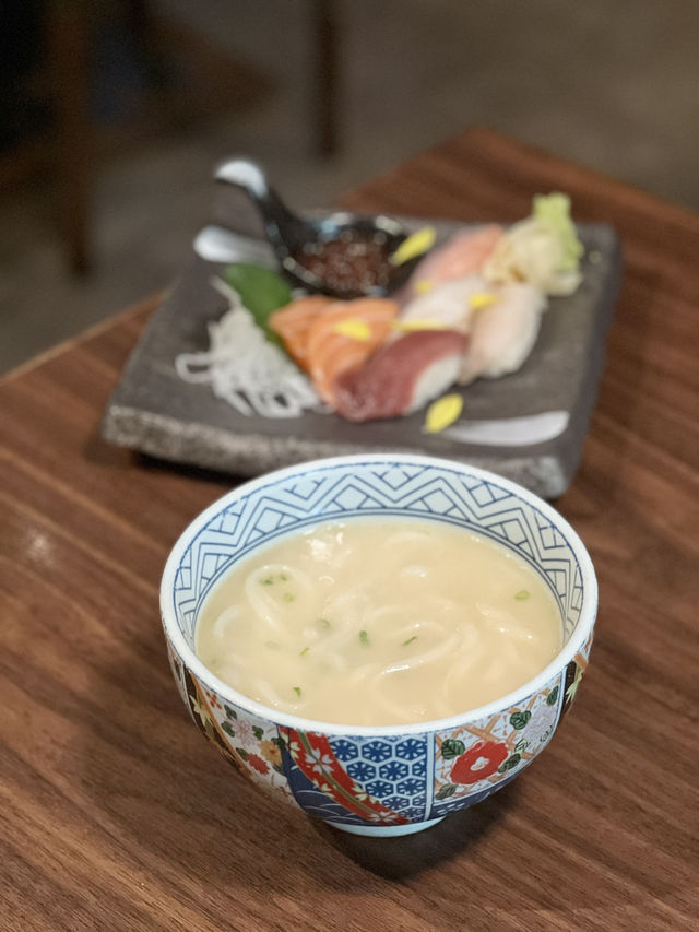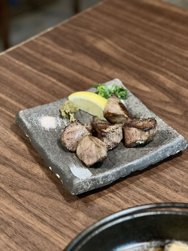 The restaurant's seating is quite comfortable. Lunch sets are 40% off, so you can get one for just over a hundred bucks. Each set comes with three appetizers and a noodle soup. The appetizers include beef tongue, tamagoyaki, and sesame tofu. ✨Beef Sukiyaki Set ($143) The beef sukiyaki has large chunks of beef, about 4-5 slices. The beef is rich in flavor, slightly lean, and not greasy. The sukiyaki is topped with baby cabbage, vermicelli, and mushrooms. The broth is sweet yet salty. It's a fantastic dish to eat with rice. ✨Sushi Set (Chef's Choice) with Handmade Udon in Chicken Broth ($167) The sushi is chef-made and changes daily. Today, there are six sushi, sashimi, and salmon roe options. Each one is fresh. The salmon is plump and fatty, while the other dishes are tender and delicate. The handmade udon in chicken broth has a rich chicken flavor and is rich in collagen. ✨Premium Salt-Grilled Ox Tongue Filling ($88) There are 5 pieces in total, all thickly cut and large. The outside has a slightly charred aroma, while the inside is crispy, tender, and quite juicy. 📍 Shinko Izakaya (Causeway Bay) 9/F, Jardine's Center, 50 Jardine's Bazaar, Causeway Bay