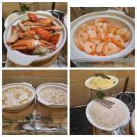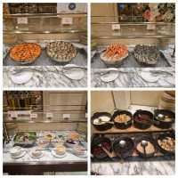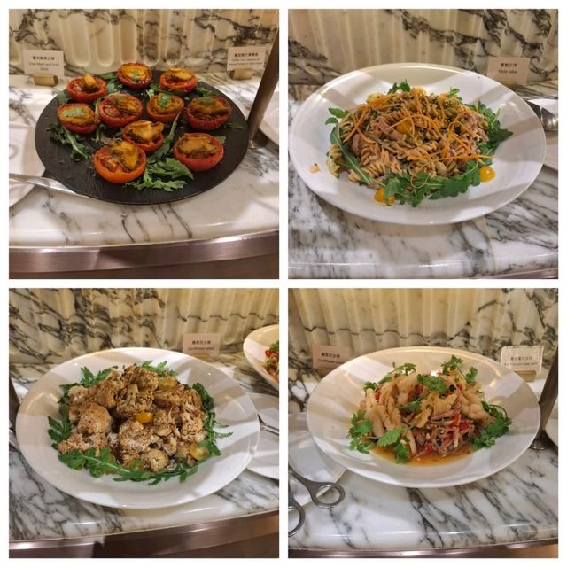 I previously had the opportunity to try the dinner buffet at The Excelsior Hotel. The venue is spacious and not overly crowded. There is a wide variety of food available, and among the selection, most dishes are quite flavorful. One dish I highly recommend is the abalone in spicy tomato sauce. The reason I recommend the abalone in spicy tomato sauce is that the tomato flavor is rich, and the abalone is tender and chewy, making it very delicious. However, the herb-roasted chicken could use some improvement. It was overcooked, making it too dry, and the chicken itself lacked flavor, which was disappointing. Aside from this issue, the rest of the dishes were generally good. Additionally, the staff were friendly and provided excellent service. I look forward to having the chance to enjoy the buffet here again in the future.