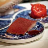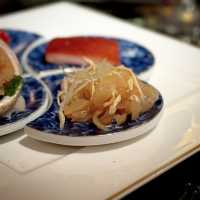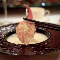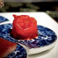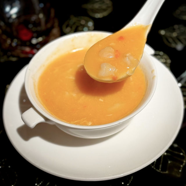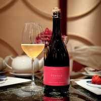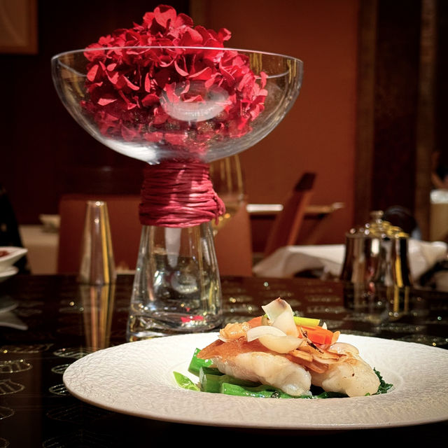 Limited-time dishes that you must act fast to enjoy! I had the pleasure of savoring a delightful Chinese meal, but since it's only available for a short period, I can only cherish the memory deeply. To celebrate Hilton Group's Chef's Season, Hong Kong Conrad Hotel's Chinese Executive Chef Yuen Chung Yiu has meticulously crafted a six-course menu at Golden Leaf. I visited with friends to enjoy this exclusive seasonal menu. Upon entering the restaurant, we were greeted by this sparkling tea! It reminded me of the sparkling teas I tried in Taiwan a few years ago, which were truly exceptional. That evening, we were excited to taste the hotel's own creation. The restaurant's ambiance is serene, complemented by elegant Chinese-style decor. Each guest of the set menu receives a signature sparkling tea from Hong Kong Conrad Hotel! This tea is blended with Italian bergamot, Chinese jasmine, and Indian sandalwood, delivering a delicate and refreshing aroma under soft bubbles—truly one of the finest teas I've ever tasted. The first course featured shredded chicken with jellyfish, chilled fresh abalone, crispy suckling pig, and pineapple hawthorn shrimp balls. The presentation was exquisite, and the portion size was just right for an appetizer. The chilled fresh abalone, served as a cold dish, was incredibly refreshing with a tender and chewy texture. The shredded chicken with jellyfish was equally delightful, combining the savory chicken flavor with the crisp jellyfish for a perfect bite. The crispy suckling pig had a crunchy skin that was a joy to bite into, and dipping it in the special sauce enhanced its rich aroma. The pineapple hawthorn shrimp balls were my favorite appetizer! The balance of sweet and sour with a hint of spiciness, paired with the fresh and bouncy shrimp balls, made for a perfect combination. The steamed crab claw with ginger wine and snow greens was visually stunning! The silky egg white infused with ginger wine was as smooth as snow, while the tender crab claw brought a burst of ocean freshness—an absolutely remarkable dish. The crab roe and winter melon soup arrived piping hot with a golden hue that was incredibly enticing. The thick and flavorful soup was packed with shrimp and crab meat, offering a mouthful of freshness and leaving a lingering taste. The stir-fried garoupa fillet with lily bulbs was aromatic and full of wok hei. The garoupa fillet was firm and flavorful, and the sweet and fresh lily bulbs added richness to the dish's texture. The premium chicken soup-poached chicken was tender and juicy with a rich aroma. The flavor was so intense that even the bones were infused—absolutely outstanding. The meal concluded with Golden Leaf's signature fried rice, which was dry and fragrant. I couldn't resist finishing every bite, leaving my stomach completely satisfied. Dessert was a sweet mango sago pomelo! The golden bowl added to its visual appeal, and the taste was equally impressive, providing a perfect ending to the meal. A heartfelt thanks to my lovely friend for gifting me the "Rose Whispers" cake ($468/1.5 lbs) as a sweet birthday surprise! Though I am an "expired" birthday star, I brought it home to share with my dad. The exquisite rose decoration was made of chocolate, and the luxurious red mirror cake contained red fruit rose chocolate, red fruit mousse, sponge cake, and raspberry rose jam. The smooth texture and sweet-tart flavor were absolutely delightful. The Golden Leaf Chef's Seasonal Menu is priced at $988 per person, with an exclusive online booking price of $889.2 per person. Available now until September 30, 2025—make sure to book early to enjoy!