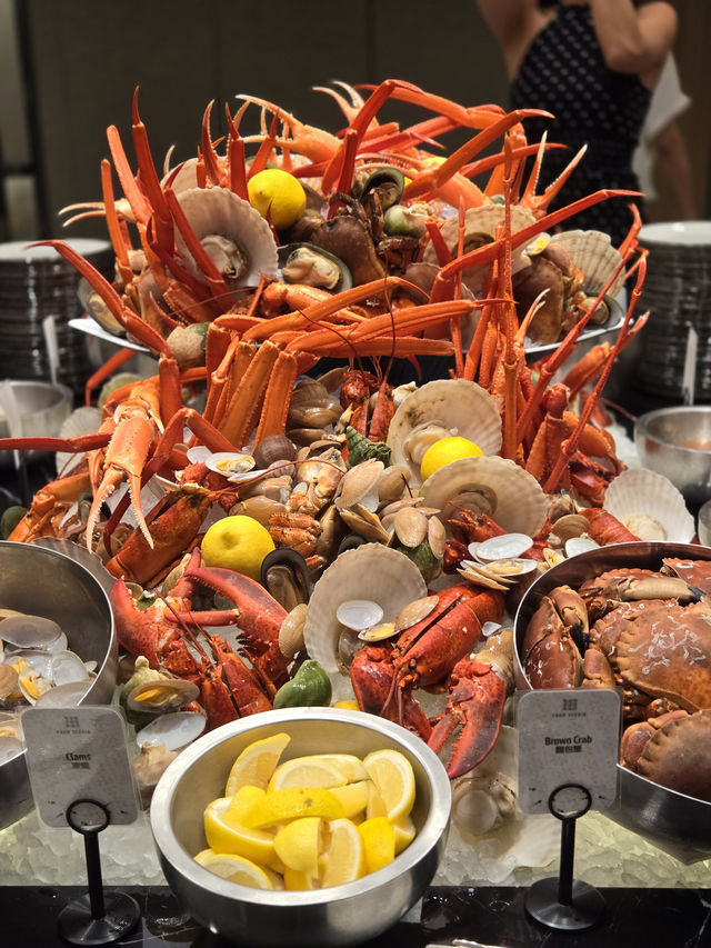 The buffet at the Marriott Seaview Hotel has always been highly praised by gourmets. New decor, bigger place, richer and more characteristic food options. The design of the restaurant is inspired by the Skyline Ferry and trams in Wan Chai. Walking out for a walk, the most eye-catching thing is undoubtedly the majestic frozen seafood mountain, lobster, spiny crab legs, mussels, mussels, emerald snails and so on. All kinds of frozen seafood are fresh. I especially like the breaded crab and lobster with burst lamb. Speaking of lobster, Marriott Seaview's steamed live lobster has always been the signature, after the new installation, of course, also retained, tender meat and lamb, lobster claws are even sweeter, can be called the buffet table's number one high standard. The buffet concept here focuses on interaction, with many delicacies improvised, including the fragrant grilled tiger prawns. Take it back fresh and hot, the finished product is naturally bouncy and fresh, the crab head and lamb are delicious. Another key item, when it comes to seaweed combined with caviar, does anyone love this combination? Except for this Japanese taco, the rest of the sashimi is very tempting, with peony shrimp being the focus. Another seaweed delicacy here is seaweed pasta. Also made on the spot, pasta with seaweed, fresh on top, remember to eat hot! Today's buffet, really have to do all the magic, the ordinary noodle stall in the past, now have to do luxury and standard, such as here's lobster lasagna, the soup is super class for a buffet, and then blow half a Boston lobster down, the author who loves Singaporean cuisine is satisfied to the extreme. Roast beef or ham, you will encounter in many hotel buffets, however, whole roast suckling pig is really rare. The master cut it impromptu, and the clicking sound said it all. The skin is crispy and the meat is tender with a salty flavour. The two pieces are not enough. Again, the roast beef was actually good, and I swallowed two pieces as well. Other wonderful items include steamed eel in soy sauce, and soups. The soup here is really good, three including Chinese crabmeat winter soup, French onion soup, and stewed snails are worth tasting. Of course, not missing the grilled flavor, barbecued pork, roast duck and oil chicken, satisfy my three wishes. If you eat a little more of each hot food, your belly will almost burst. Fortunately, eating sweet is never another stomach. Desserts here are cake-based, from fresh pineapple lemon coconut cake, to gorgeous red velvet, to heavy cheesecake and brownies, and tiramisu. I am a cake lover. I am happy. Other desserts like pistachio puffs, linmingtons, made-to-order orange wine pancakes, and four flavors of Italian ice cream were all to my liking. I'm so full that I need to drink a cup of Earl Gray tea to relieve my stagnation~ Restaurant Information: Food Studio Porch of Marriott Seaview Hotel, 1 Harbor Road, Wanchai