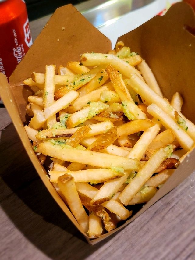 "Burger Joys," once listed among the world's top 50 burger restaurants, is conveniently located near Wan Chai MTR station. The restaurant features trendy American-style decor 😎 and attracts many tourists. 🐄🐄 Signature Double Cheeseburger This burger boasts two thick and juicy beef patties 🐄🐄 paired with two slices of deliciously melted cheese 🧀🧀, along with tomato, lettuce, and onion. The patties are tender and flavorful, complemented by rich sauces that create a delightful texture and mouthfeel 😍. Served on French butter buns, toasted to perfection with butter. 🐄 Cheeseburger Similar in taste to the Signature Double Cheeseburger but lighter, featuring one beef patty 🐄 and one slice of melted cheese 🧀. Perfect for those with a smaller appetite. ▪︎ Combo: Fries & Soda Upgrade your burger to a combo for an additional cost! There are several types of fries to choose from. I opted for the golden and crispy potato gems 💛. 🧄 Garlic Fries 🍟 We also ordered these fries separately. The addition of garlic 🧄 makes them irresistibly flavorful—impossible to stop eating!