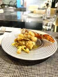 👀 Restaurant Ambiance: The layout is elegant, featuring a minimalist Japanese style. The main seating area consists of two large bar counters, fully occupied by guests. The staff attentively introduced the menu and ensured they understood our dietary preferences. 🎀 Premium Wagyu Set Menu 🎀 🌻 Yuzu Shrimp Salad The salad is refreshingly tangy, with fresh ingredients served chilled. 🌻 South African Peacock Abalone with Seaweed Salad Dressing The abalone is tender and chewy, slightly seared for added flavor. Pairing abalone with salad was a first for me, and the combination worked well. Even the liver was edible, offering a rich taste. 🌻 Australian Lobster The chef skillfully removed the lobster meat in just a few moves, making the preparation a visual delight. Cooked to a perfect medium-rare, the lobster retained its firm texture and sweetness. The lobster roe was used to make the sauce, ensuring nothing went to waste. 🌻 Pork and Scallion Rolls Since my friend and I aren't fans of beef offal, we opted for this dish instead. The scallions were aromatic, enhancing the pork's natural flavor. 🌻 Kagoshima Wagyu Thin Slices with Buttered Vegetables Wrapped with scallions, the Wagyu beef was rich with marbled fat, melting in the mouth. 🌻 Kombu White Clam Soup Made using the lobster head from earlier, combined with white clams and kombu, the soup was light and refreshing, perfect for cleansing the palate. 🌻 Sea Urchin Seafood Fried Rice Ingredients included seafood, sea urchin, scallions, eggs, and rice, stir-fried to perfection with each grain distinct. The dish was aromatic and dry, just right. 🌻 Tofu Ice Cream The final dessert featured tofu ice cream paired with red bean paste, a harmonious combination. The ice cream was soft and creamy, with a distinct tofu flavor. ❤️❤️❤️ Overall, the menu offers high-quality ingredients like lobster, abalone, and Wagyu beef at a great value. Highly recommended. 📌 Restaurant Name: Yutetsu 📌 Address: 13th Floor, 487-489 Lockhart Road, Causeway Bay 📌 Transportation: MTR Causeway Bay Station, Exit C 📌 Recommendation Rating: 👍👍👍👍👍 (5/5)