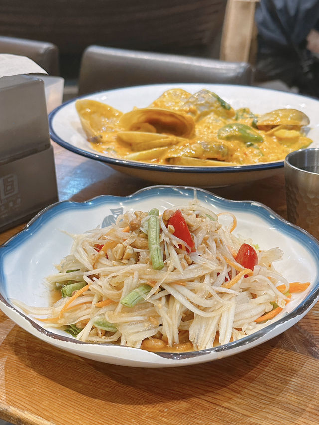 It's been a long time since I last visited Thailand 🇹🇭, so I had to satisfy my cravings for Thai food at 'Little Bangkok Seafood BBQ'. Thai Curry Stir-Fried Clams 🐚 The curry is aromatic with a mild spiciness 🍛. The clams are huge 😱, fresh, sweet, and bouncy 😆. Paired with bell peppers 🫑, it's absolutely delicious 😋. Grilled Pork Neck 🐖 The pork neck is grilled to a slightly charred crisp 🔥. The meat is tender, juicy, and full of flavor 😗, with a nice fatty texture 😌. Thai Green Papaya Salad 🥗 Refreshing and appetizing 🤤. Thai-Style Original Grilled Flatbread (2 pieces) 🫓 The flatbread has a delightful buttery aroma 🧈, perfect for dipping in curry 👍🏻. Little Bangkok Seafood BBQ Address: 📍 Shop 1-3, G/F, The Prince Place, 398 Prince Edward Road West, Kowloon City.