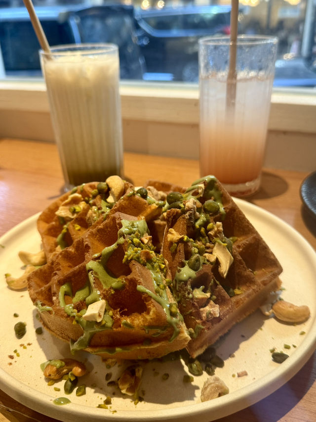 Visited Tera in Jordan with friends for afternoon tea and tried several signature dishes. Overall, the experience was great! 🧇 Pistachio Waffle Crispy on the outside and fluffy on the inside, with a rich pistachio flavor. Paired with matcha ice cream, the hot and cold combination is amazing! 🍵 Hojicha Coconut Milk The roasted hojicha blends surprisingly well with the fresh coconut milk. It's smooth, not greasy, and leaves a long-lasting tea aroma. 🍫 Dubai Chocolate Pancake The soufflé pancakes are incredibly airy, paired with rich and creamy Dubai chocolate, offering a crispy texture. 🍦 Matcha Ice Cream The milk flavor is more prominent than the matcha, perfect for those who prefer a mild tea aroma. 🌵 Cactus Fruit Yogurt Soda Slightly tangy and refreshing, with a lovely pink hue, perfect for photos and cleansing the palate. 🍝 Smoked Salmon Pesto Pasta Savory smoked salmon paired with a fresh and creamy pesto sauce. The pasta is cooked to the perfect texture, with a well-balanced flavor. 🥞: TERA 📮: Shop 4, G/F, Po Fat Building, 273-285 Temple Street, Jordan