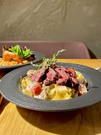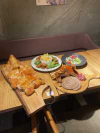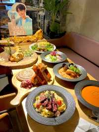 There are holiday-style cafes near the airport 🙂↔️11 Skies’ new flower kitchen CAFÉ, very Vacation style! The mall is close to the Asia Expo, only 5 minutes walk🚶🏻♀️ The restaurant is pink as the main tone, the walls are full of 💐 floral specimens with soft 💡 lights, it's really Igable😆 The environment style is completely different from Tomacado flower kitchen! The meals are mainly healthy light meals, coffee ☕️, flower and fruit tea🍵. Perfect for working people/groups of friends gathering and checking in📸 🔸Vanilla Roasted Three Yellow Chicken $148 Roasted Sanhuang Chicken with Herbs A plate and a half of chicken, using three yellow chicken, the chicken is not very fatty, the chicken is tender and Juicy, with roasted potatoes very tasty. 🔸Port Seafood Pizza $158 Seafood Pizza Pizza🍕 is a pizza base, crispy. There are plenty of ingredients, shrimp, salmon, squid, arugula, tomato, black olives, and a layer of cheese🧀, Yummy! 🔸Lightly pan-fried salmon super mold salad (with honey vinaigrette) $148 Lightly Pan-Fried Salmon Salad Healthy Choice❗️ Using a variety of fruits including black mulberry, red mulberry and figs, mixed with meaty salmon pieces, fresh salad vegetables 🥗, pumpkin seeds, almond slices, rich taste. 📍Flower Kitchen CAFÉ A121 & K104, 1/F, 11 SKIES, 8 Aerospace City East Road, Hong Kong International Airport, Chek Lap Kok #11SKIES #photorestaurant #FlowerChefCAFÉ #healthylightfood #HongKongphotorestaurant #pinkmain tone