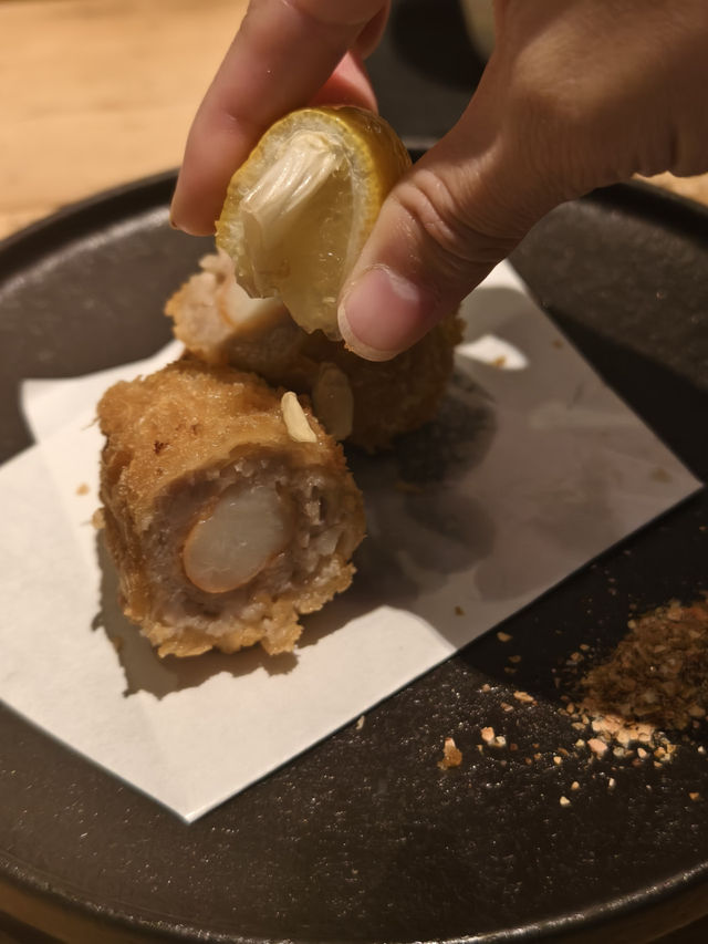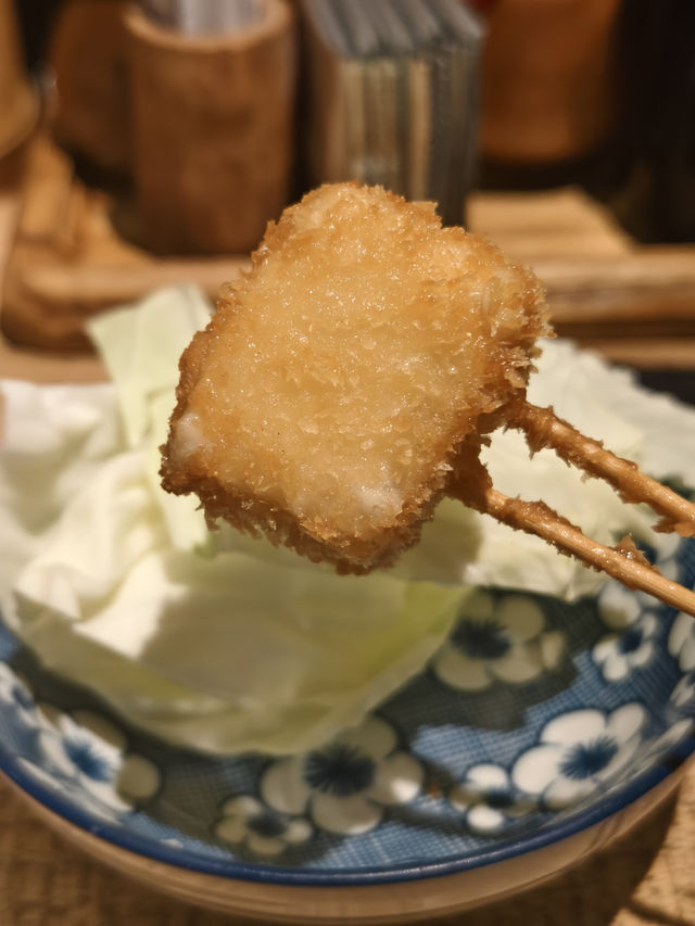 Sesame Tofu $22 Pork and Egg Roll $42 Sweet Potato Tempura with Rum Raisin Cream $88 Sushi Platter $138 Hakata Mentaiko and Beef Intestine Hot Pot $398 Additional Ramen $38 Jumbo Prawns $78 Bacon and Potato Salad with Mentaiko and Cheese $38 Bacon and Potato Salad with Wasabi Cream $38 Taste Index: 😋😋😋😋😋 Value Index: 💲💲💲💲💲 Environment Comfort: 😌😌😌😌😌 Cleanliness: 🧹🧹🧹🧹🧹 Service Quality: 💁🏼♀️💁🏼♀️💁🏼♀️💁🏼♀️💁🏼♀️ Looking through photos from my previous trip to Osaka 🧳, I missed kushiage (deep-fried skewers). I found out this Japanese izakaya in Causeway Bay serves kushiage, so I decided to try it. There were quite a few options; I chose eight dishes. Each diner could also choose one of the three appetizers. From the various kushiage options, I chose two. Both dishes were fried to a crispy finish. The sesame tofu was tender and soft. The egg in the pork and egg roll was runny, and the yolk flowed all over your mouth. The sweet potato in the sweet potato tempura with rum and raisin cream was dense and soft. The rum and raisin cream had a rich, layered flavor, combining the aromas of butter, wine, and the sweetness of raisins. The sushi platter included five pieces of sushi, all of which were incredibly fresh. My favorite was the red shrimp sushi, which was sweet and savory, with the shrimp heads filled with shrimp paste. The large shrimp in the golden brown jellyfish had a crispy exterior. The shrimp were fresh and crisp, with a rich shrimp flavor without any fishy smell. A few drops of lemon juice greatly enhanced the umami. The two dishes were incredibly creative, replacing the traditional red bean filling with a bacon and potato salad with mentaiko cheese and a bacon and potato salad with wasabi cream. The bacon 🥓 potato salad had a smooth texture. The mentaiko cheese had a salty and spicy kick. The wasabi cream had a subtle pungent kick, adding a nice tingle. The Hakata mentaiko beef intestine hotpot with miso soup brought back memories of my trip to Kyushu. The broth was rich yet not greasy. The intestines were tender yet slightly chewy. The sweet sprouts and cabbage in the pot, along with the extra springy ramen 🍜, fully absorbed the essence of the hotpot. The high quality of the food perfectly explains why the restaurant was always packed, and why some of the diners were Japanese. —— Kushi Kazu Specialty Store JunG39 JAPAN 📬17/F, Wing Kwong Commercial Building, 499 Hennessy Road, Causeway Bay #CausewayBay #Kushi Kazu #Kushi Kazu Specialty Store #CausewayBayFood #MidnightDiner