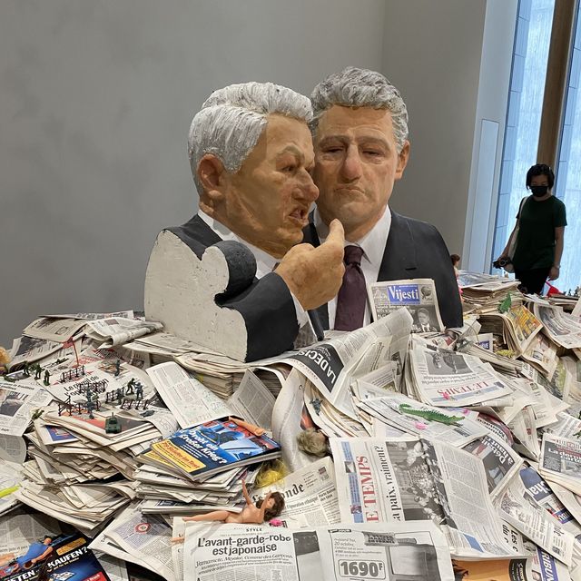 This time we introduce you to one of the most popular art works in the M+ Museum, the  "Paper Talk" located in the Hick Hall. The work was created by Chinese artist Wang Du. The work consists of many old newspapers, plastic toys, paper cranes, and busts of then US President Bill Clinton and Russian Prime Minister Yeltsin. It is an art work to satirize the war in Kosovo at the time.  Since I don’t know much about the war background at the time, However, from a perspective of viewing art works, this work is really suitable for photography! Every time I visit the M+ Museum, I see many people queuing up to see this work. Friends who have never seen it must come and queue up to see it! #LocalTour #Exhibition2022 #ConsumerVoucherStrategy