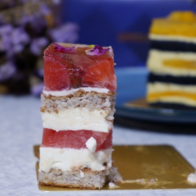 I saw online that LIFETASTIC has opened a new branch and is offering a grand opening promotion. From September 5th to 7th, 2022, you can enjoy two of LIFETASTIC's signature individual cakes for just $85. They'll be available at two designated times daily: 12:00 PM and 5:00 PM, with a limit of 40 cakes per period, while supplies last. Location: Inside Admiralty MTR Station. Environment: Small, with a dark blue background and a large glass display case for cakes. Service: Takeout only, specializing in gluten-free cakes. The packaging is especially bright and thoughtful☺️, and the paper bags are thick. These details make the cakes look more upscale and also increase the price😌. $85 Signature Cake Set: 🍓 Strawberry🍉 Watermelon Cake🍰 The exterior is exquisite, with a strawberry jelly top layer topped with edible roses🌹. The base is an almond powder base, and the center is filled with a smooth mousse and watermelon jelly🍉. It's rich in layers and texture, offering both watermelon🍉 and strawberry🍓 flavors, a taste of spring and summer. While it won't leave a lasting impression, a single try is enough. The sweetness is just right😁. 🥭 Mango and Pomelo Cake🍰 The top layer is yellow🥭 mango jelly, with a pomelo mousse layer, mango🥭 flesh, and a charcoal glutinous rice base. I personally prefer this cake to the watermelon cake because the mango flavor is much more pronounced😍, with a sweet and sour taste that's not at all cloying. #localtourism #foodie #summerfoodie #hkfoodie #Admiraltyfood #cake #cakerecommendations