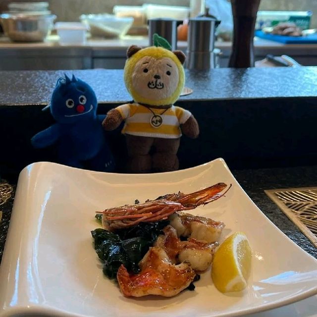 Five brothers went to Tin Hau to look for Japanese Teppanyaki 🐻🐥🐻🐶👽 There are many teppanyaki restaurants and Japanese teppanyaki restaurants, but there are very few Japanese teppanyaki restaurants that offer views of Victoria Harbour! It was our first time dining out and we were fortunate enough to taste such a unique hidden treasure in Tin Hau. We were extremely honored. The appetizer is seasonal Okinawa Mizuna Pan-fried foie gras with blueberry sauce The fat foie gras is very fatty. If you like blueberry jam, you can lightly dip it in to reduce the greasiness. It is delicious with the crispy and fragrant toast! Wild Tiger Prawns on Iron Plate Watching the chef cut the prawns with his gorgeous knife skills, he is a very skilled chef~ The prawn heads filled with prawn paste are fried well, and the prawn bodies are the essence. Eat the original flavor first, then use lemon juice to enhance the freshness, and finally add the mysterious seafood sauce, and you can fully feel the fierce and powerful tiger prawns~ Scallops with Herb Butter Salmon roe with butter-flavored Japanese scallops, what's the best? Grilled Silver Cod Sometimes I feel that eating cod meat is more satisfying than beef, because the iron plate method seals the cod oil, and the fat is released when you put it in your mouth! Top American Beef The meat is soft and tender, with a strong beef flavor from the fried garlic and onion! Teppanyaki fried rice with kelp noodle and black bean soup The cherry shrimp adds the finishing touch to the dry teppanyaki fried rice! Japanese Stir-fried Vegetables Cabbage, shredded radish and mushrooms. It's nice to eat some vegetables at the end. feast. Teppanyaki Yan. Sashimi Teppanyaki 24/F, Tin Hau, 54 Electric Road, Tin Hau #Teppanyaki #Feast #Queen #Henghuan #Japanese stir-fried vegetables #Tiger prawns #Seared foie gras #Blueberry sauce #Scallops #Cod #Beef #American #Teppanyaki fried rice #Kelp #Bean curd soup #Japanese food #Japanesefood #Hongkong #Sakura shrimp #The finishing touch #Five brothers #Three idiots #Kumamon #Silly duck #Kumamon #Blue furry #Lemon boy #Miyazaki dog