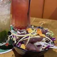 The secret back garden of Kowloon Road in Tsim Sha Tsui 🌿🌿, the restaurant decoration is like the name of the restaurant Garden, the wall is designed with grass walls, green oil like a grassland, with the design of unique chandeliers, wooden furniture, the environment is very comfortable, many photo locations, and there is a row of bar tables facing the street, feels very Grill In addition, the Menu in addition to a large selection of wine, other food is also very rich, mainly multinational cuisine, Western, Japanese, Thai food are available, feel quite interesting, we ordered a little to try each country's food😎 🐙▪️Fluorescent Squid Okizuke $88 Fluorescent squid rinse, full of seawater freshness, salty and crispy, served with salad vegetables, appetizing appetizers 🐔▪️Chicken Cartilage Skewers $68 Pepper and salt chicken cartilage skewers, grilled just right, large, very crispy, with pepper and salt, very tasty 🐙▪️Cuttlefish Cake $88 Cuttlefish cake, this has a surprise, the squid cake fried to crispy outside and bouncy inside, still eat the grains of cuttlefish and corn, very crispy, dotted with Thai sour and spicy sauce, good 🍕▪️Seafood Pizza w/Thousand $148 Seafood pizza, a very special crust, the clerk revealed that the chef daily hand-kneaded, thin and crispy, ingredients have scallops, squid, mussels, fresh shrimp, with thousand island seafood sauce, freshness, very appreciate this crust 🐷▪️BBQ Lagrimas Iberico Rid $228 American grilled Spanish black hair pork ribs, using black hair pork is particularly hearty, BBQ sauce is very flavorful, the meat is baked very soft and slightly refreshing, good, beer crispy fries, especially crispy, and fresh salad vegetables neutralize the greasiness ☘️▪️Mojito $88 Rum, Lime Juice, Mint, Sugar, Soda 🍹▪️Cinderella $68 Grenadine, Pineapple Juice, Cranberry Juice, Lemon Juice 🏛 Garden Bar & Restaurant 📍G/F, Huan Lee Business Centre, 7-9 Constantine Road, Tsim Sha Tsui #gardenbarandrestaurant #secretbackgarden #bar restaurant #bar #tsim Sha Tsui recommendation #tsim Sha Tsui restaurant #kol #foodkol #foodlovers #blogger #foodblogger #foodkol #food #foodie #foodlover #foodforfoodies #hkfood #hkfoodie #hkfoodblog #hkfoodblogger #hkfoodstagram #hkfoodpic #hkfoodporn #hkfoodlovers #hkfoodie #foodguide #hongkongfood #camerafoodfirst #lonelyfoodie series