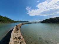 A stone bridge for pedestrians crossing the sea that is still well preserved and has historical value