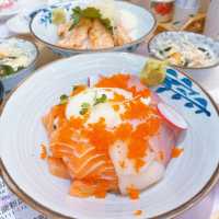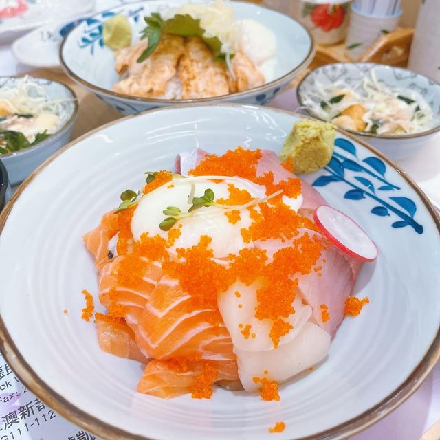 Extremely good value for money🤗 Must-try sashimi bowl set meal🍣 🌸Demei Sushi🍣 This time with Pig came to Kwun Tong near, come to Yu Min Plaza know famous for many food, this time let us try located on the 3rd floor of Demei Sushi 🤗 Personally, I like the set meal, because it feels very rich and complete 👍🏻 We ordered two set meals this time, and the set meal includes dessert 🤭 Dinner set meal is not very expensive, the cheapest $ 70 dollars, not counting plus one 😆 high quality, ingredients fresh 😍 Code is very convenient to order, the staff is friendly, the food is served quickly, and there is also free brown rice hot tea🤗 ✨Three-color sashimi bowl $120 Three-color sashimi bowl, including salmon, oily fish, scallops, hot spring eggs, and crab seeds 🤗 Sashimi thickness is moderate, large pieces, very satisfying 🥰 Sashimi is very fresh, fresh, food quality is very high, super high value for money, you must try this restaurant's sashimi, and its wasabi is very fresh Must-try index ✨✨✨✨✨ ✨Ocean Style Grilled Salmon Don $100 Once served, the aroma of 🧅 onion with grilled salmon 🍣 comes to the nose, salmon inside half-cooked state, very pink tender, after grilled salmon aroma more out, with onions, spring eggs, aroma burst in the mouth 😍 like to eat salmon, you must try 🤭 salmon itself tastes relatively light, but added sushi soy sauce and fresh wasabi, taste just right 🤗 And it's a lot of satisfaction 👍🏻 Must-try index ✨✨✨✨ All packages include bean curd soup, sesame dressing salad, dessert, very good value for money🤗 🏠 Demei Sushi (YM2) (Kwun Tong) Shop 310, 3/F, Yu Min Plaza, 33 Concord Street, Kwun Tong #highqualityrestaurant #Kwun Tongfood #anniversary #couplescelebration #all you can eat #hkfoodie #sushi #japanese all you can eat #hkfood #foodshare #restaurant #foodlover #foodie #instafood #couple everyday #foodmap #buffet #seafood all you can eat #matchatea #dessert #christmas dinner