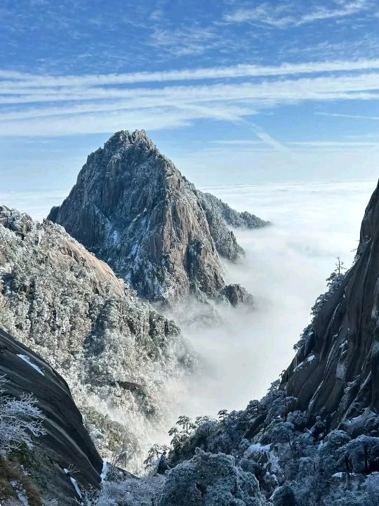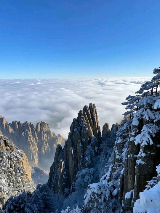 #hellohalloween Spectacular snowscapes: The unique, oddly shaped pines and bizarre granite peaks are draped in a blanket of white snow and glittering rime ice, creating stunning photographic opportunities. Sea of Clouds: The cold, misty conditions of winter often produce the famous "Sea of Clouds" phenomenon, which appears more often in winter than in any other season. Clear weather and sunrise: While fog is common, winter brings clearer skies, which increases the probability of seeing a brilliant sunrise.