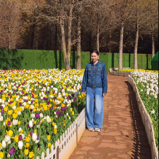 #SoCute Tulip Field In the middle of 18 degrees in #Kunming 💖🌷 This picture was taken in the middle of February. In Kunming, there is a large tulip field to walk around. It is a garden surrounded by colorful tulips. The weather is cool and comfortable. It is very enjoyable to walk and take pictures. Location: Laoyuhe Park, Kunming, China #TravelAbroad #Kunming #China #Kunming #China #Tulip #TravelChina
