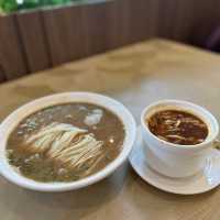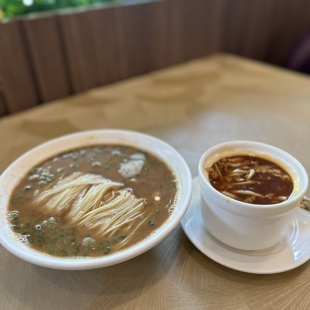 After going to Kwun Tong APM, I went to the next shopping mall to find a restaurant for lunch. I saw a thousand-year-old tang dan noodle menu with attractive food, so I went in to try it 👍 The environment is spacious and comfortable! Wing Quin Garden Bean Dan Noodles The hot soup has a very fragrant peanut flavor and pork drunk, the noodles are very thin and smoky and tough. Each strip is covered with sauce, great! Yang Family Small Caviar Bao Almost every table must order, a cage has four pieces, thin skin and juicy pork fresh and sweet, plus ginger and vinegar taste great 👍 Pan-fried buns Small bites are delicious, the bread is soft and fluffy, the bottom of the bun is slightly browned and crispy with sesame flavor, the pork is fresh and juicy 👍 Fried spring rolls The spring roll skin is fried until golden brown and very fragrant. The filling is carrot strips, black fungus, vegetables and pork. Everything is very fresh and tastes great 👍 Hot and sour soup We ordered one person portion, moderate sweetness and sourness, the soup ingredients are kidney, black fungus and fresh shrimp, full of ingredients, hot and warm after drinking 😋 #Kwun Tong #Kwun Tong Food #Dang Dan Noodles #Small Cang Bao #Sour and Spicy Soup #Fried Spring Rolls #Camera Eat First #Hong Kong Food #Hong Kong Visit #hkig #hkfoodie #hk Thousand Years Dan Dan Noodles (Kwun Tong) Shop 302A, 3/F, Yu Min Plaza, 33 Concord Street, Kwun Tong