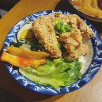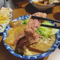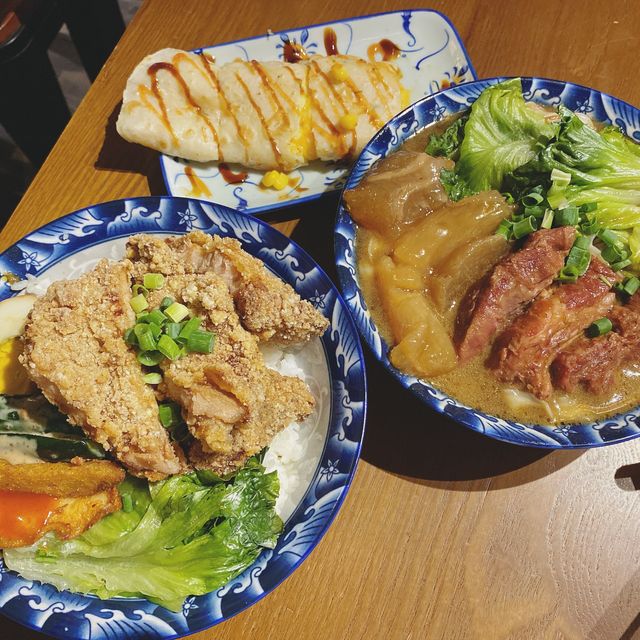I go to Kwun Tong Industrial Building from time to time to find food, but this time I went to Wing Hing Industrial Building to eat Taiwanese food ▪️Spicy stinky tofu A bowl of not only stinky tofu, but also a stick of bamboo and vegetables! ▫️ Corn cheese egg rolls The cheese portion is very plentiful, when folded up to do a very wicked rash, the corn kernels are very sweet, the grilled sauce on the egg cake is very tasty! ▪️Red braised half-gluten half-meat noodles🍜 Turn the knife to cut the noodles Very rich, beef gluten and beef are many pieces, both cooked very soft, very seasoned! ▫️ Fried ribs bento 🍱 The pork chop is super large, cut into 5 large pieces, fried to very crispy, plus there is salt and pastry powder on the surface, especially delicious side dishes also half an egg, fried sweet and spicy and lettuce, very rich ~ ▪️Honey Green Tea🥤 The honey taste is light, but not very sweet, clear is good ▫️ Pineapple green tea 🥤 My boyfriend said this cup is good, the pineapple flavor is so good that it quenches my thirst Overall, the portion was very plentiful and affordable, no wonder the whole house was full! 🍴Riyuetang 📍Room C2, 4/F, Wing Hing Industrial Building, 14 Hing Yip Street, Kwun Tong #cafe #this bar is a bit cool #foodie #I miss #hot summer place