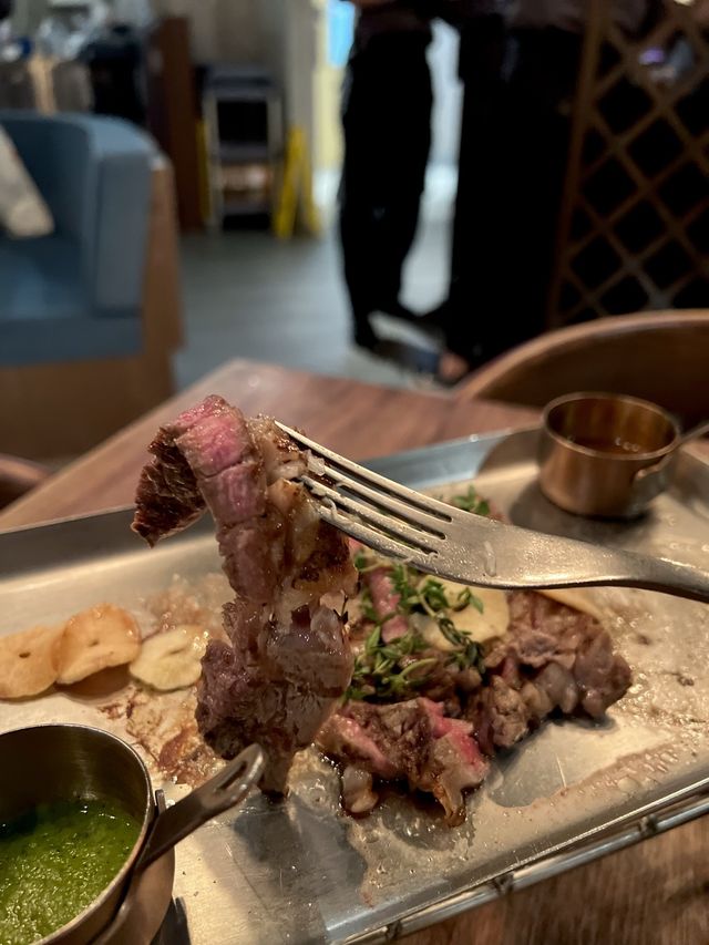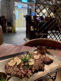 I didn't expect that there is such a high-quality restaurant in Kwun Tong🍴 The restaurant is big, and spacious, very comfortable. Everything was delicious this time. I will definitely encore again! Personally, I think the must-try soufflé pancakes and steak☺️ ▶️ American 1855 Angus Ribeye $268 Selected 50% cooked, the steak will be placed on an iron plate, underneath a small stove to heat while eating. The steak has a charcoal grilled flavour, the beef flavor is rich and juicy, very high quality😋 ▶️ Black Truffle Fries 🍟 $68 The french fries here are a lot of portions. The fries are thin and crispy. I chose the black truffle flavor. The black truffle sauce is delicious! I ate a lot without knowing it🤪 ▶️Garlic Crab Pasta🍝$148 The pasta is very delicious, with a lot of crab meat. The pasta is moderately smooth and has enough sauce. ▶️Hazelnut Chocolate Caramel Banana Soufflé Pancake $95 This really must be ordered, very tasty 😋 There are two pieces of soufflé pancakes, thick. There's an airy feeling inside, it's delicious😍 Served with caramel bananas🍌 ▶️ Orange Juice $56@ Each ordered a glass of orange juice, very fresh! A rare high-quality restaurant in Kwun Tong, the food is delicious😋 The environment is good and the price is not expensive. NATA - Steak, Wine & Cocktail Shop 1, 4/F, Kuok Group Centre, 107 Chow Ming Street, Kwun Tong #soufflepancake #pancake #sour pancake #steak #steak #pasta #pasta #Hong Kong food #Kwun Tong #Kwun Tong food #dessert #hkfoodie #foodblog #eataroundtheworld #followme