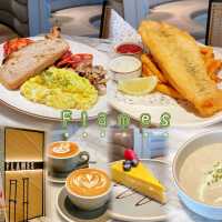 Find this relaxing restaurant in Kwun Tong, where old industrial buildings and new commercial buildings are interspersed. The restaurant has a novel design, elegant environment, and quality food. It is suitable for holidays and friends or your partner. 🔥 Flames special breakfast Bacon | Sausage | Mushrooms | Tomatoes | Wraps | Eggs Traditional all day breakfast, quality ingredients, eggs you can choose from scrambled egg or fried egg. For an additional fee, you can have soup or salad with a meal. The soup has mushroom soup and is creamy. Add a glass of cappuccino with fluffy milk foam and latte art. 🔥Fish&Chip fried fish and chips with tatar sauce Since it is freshly fried, frying fish takes time. It feels British to eat Fish & Chip. Before eating, add lemon juice and dip it in the attached tartar sauce for outstanding flavor. Added Mocha, no strong coffee flavor, but a faint chocolate aroma. Chase plus dessert to try, the day cake has Earl Gray or mango coconut, recommended try mango coconut 🥥, there are several layers, especially like the coconut fruit layer, not only taste, but also very match with mango. 🛎️ Must-try index: 8/10🔆 📍Address: Shop 1, G/F, Two Sky Parc, 51 Hong Tu Road, Kwun Tong #wingwingpiglife #wingwingpig_kt 🅆🄸🄽🄶 🅆🄸🄽🄶 🄿🄸🄶 🄻🄸🄵🄴 #brunchtime #hkbrunchplace #ktfoodie #brunch #lifestyle #findplacetorelax #findgoodliving