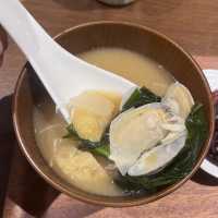 Japanese Restaurant Shop A, G/F, Hung Wan Industrial Building, 63-65 Hung To Road There are still many old factory buildings in the Kwun Tong factory area. Although many of the units upstairs have been transformed into restaurants, frozen meat shops, furniture shops or other retail stores, there are still large ground floor shops or first-floor units that were originally used as factory building canteens. Today, all of these shops have been transformed into tea restaurants or private kitchens. Due to the restrictions of the factory building’s building deed and other conditions, these restaurants still indicate “only factory building employees are allowed to eat there”. Are there really any limits? Today, I was walking along Kaiyuan Road and accidentally saw a newly opened restaurant [Nissaku Shokudo]. The decoration style of the storefront is distinctive, different from other tea restaurants on the same street; I almost thought I was in Japan. If you just look at the photos, it really doesn't look much different from a small restaurant in a quiet Japanese residence. The interior decoration is based on the themes of simplicity, leisure and campus classrooms. Some of the chairs and stools are even made directly from wooden chairs in primary and secondary school classrooms. In addition to the tables and stools that mimic the environment of a middle school classroom, the boss even placed a "jumping over wooden box" in the middle of the restaurant! I believe the boss is a nostalgic Japanese fan and is about that age. In one corner of the room, there are many solid wood cabinets imitating those from the 1960s and 1970s. Combined with the semi-nostalgic classroom environment, it already has a very nice atmosphere. In addition, there are many items from Japan's Showa era placed in the wooden cabinet and on the top of the cabinet, and even some Japanese magazines from the 1970s and 1980s... The cover star and theme are the popular animation "Galaxy Express 999" by Seiko Matsuda and Leiji Matsumoto at that time. There is only one menu, and all the dishes are set meals. The style is relatively simple, resembling a neighborhood canteen in a residential area in a large Japanese city. Each set meal comes with miso soup and two types of pickles. The miso soup contains clams, white radish slices, bean curd skin and kelp, which is delicious, but like most Hong Kong-style Japanese cuisine, the miso portion is too much and the soup is too salty. The pickles are a pleasant surprise, especially the braised pumpkin, which is soft, sticky, tender and sweet. #Eel Osaka with soy sauce soft-boiled egg and barbecued pork soup Udon. One serving contains two Japanese national delicacies. Kansai-style Okonomiyaki with grilled eel can be considered a Hong Kong-style Japanese cuisine, which is not seen in Japan. After trying it, I found that the two did not match. Okonomiyaki itself is relatively moist and is served with a vinegary sauce; grilled eel features crispy and fragrant skin, flaky eel meat, sweet fish fat, and a rich and sweet sauce. The taste and texture just don't match. Soft-boiled egg barbecued pork is usually served with Japanese ramen (soy sauce soup base or pork bone soup base), and it is very rare to see it with clear soup udon. The soft-boiled egg was up to standard, but the roasted barbecued pork was a bit hard and not tender enough. The overall taste is not bad, but I still think it is not suitable to be paired with clear soup udon. #Japanese-style Thick-cut Hokkaido Pork Rib-eye Steak Set Meal There is Japanese-style pork chop sauce, a handful of shredded cabbage next to the pork chop, and white rice, all of which are Japanese ingredients; the only complaint is that the pork chop sauce doesn't have to be paired with sesame paste, and there's no yuzu sesame sauce to go with the shredded cabbage. The pork chop is big and thick. Such thick-cut Japanese pork chop is rare in other restaurants in Hong Kong, but it is becoming more and more popular in Japan. The crispy dough is a bit mushy, and the breadcrumbs on the surface are not very nice, but it is still fragrant and crunchy when you bite it. The thick-cut pork chop has a thin layer of fat, which is an essential element of a delicious rib-eye pork chop and one of the key points of a high-quality Japanese-style pork chop. However, the quality of the pork itself was mediocre. The meat was coarse, hard, and not juicy enough, with a little residue when bitten off. Even the layer of fat could not make up for it. There are four types of sashimi donburi at different price points. I picked the #松叶貝丼. The fish ingredients originally included Hokkaido scallops, conch slices, whelks, pine crab meat, crab roe, and crab roe. Conch slices were out of stock, so they were replaced with squid. Conch is not a tasty shellfish. It is soft and refreshing, but it does not have the fresh taste of shellfish. The snow crab meat is like artificial crab. The crab roe seems to be packed in a tube of toothpaste, it tastes salty, has a high proportion of miso, and has an average aroma. The best tasting dishes are squid and Hokkaido scallops. The quality of the food is average, about the same as that in a Japanese neighborhood cafeteria; but the price is not expensive (after discount), otherwise it would not be worth it if it were sold at the original price. However, I really like the dining environment, reminiscing about my high school life and the era when I was fascinated by Japanese stars, animation, and Japanese trends that dominated Asia.