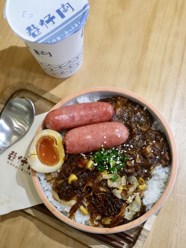 Taiwanese cuisine in the industrial building is located near Kwun Tong MTR station. The space is very large, mainly wooden, and there is a row of windows. The staff is very friendly. It turns out that most of them are Taiwanese! There are many set options for lunch, including bento, handmade meatballs, beef noodles, night market snacks, and large dim sum bucket of five spice dim sum😍 Of course, there are many Taiwanese specialties😌 Old-fashioned sausage and meat bento, served in a cute round plate, with delicious meat sauce, Taiwanese sausage, strong and handsome cream and smooth and crystal clear winter noodles, the whole plate is very rich! For snacks, I tried the fried platter, with nine-story pagoda salted chicken, sausage, happy sweet potato balls, and fried mushrooms. 📍In the alley Unit C, 1/F, Kwun Tong Industrial Centre, Phase 4, 436-446 Kwun Tong Road, Kwun Tong #Kwun Tong #Kwun Tong Food #Kwun Tong Workers #Kwun Tong Lunch #Taiwanese Cuisine #Taiwanese Snacks #Taiwanese Cuisine #Hong Kong Food