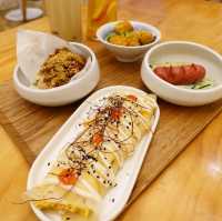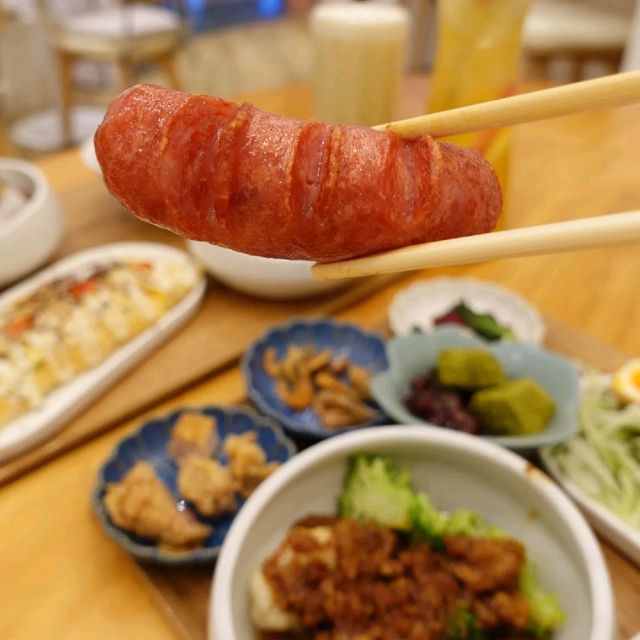 I went to Kwun Tong to pick up something, and my colleague recommended that we go to eat a newly opened Taiwanese cuisine with a hipster style! The restaurant is located in the first phase of the City of Creation. It is decorated in a simple wooden style, and the seats are extended to the ceiling, giving it a sense of space! The menu focuses on Taiwanese cuisine, including my favorite Taiwanese beef noodles, stewed pork rice, bubble milk tea and no shortage of Taiwanese snacks! The dinner set includes rice and noodles, as well as grilled chicken🍗 and fish🐟, followed by appetizers, vegetables🥬 and dessert🍮, the price starts from $88, and the Taiwanese drink can be reduced by $10, quite friendly! 👍👍👍 We finally decided to have a night market party ~ share together! 🍱Pepper and Salt Chicken Leg Ribs with Stewed Pork Rice🍗 $79 The dinner plate is beautifully placed! Bonus points for seeing! The pepper and salt chicken legs are so delicious! The sweet and fragrant chicken is tender and juicy, plus full of moderately fatty and lean stewed meat, fragrant but not greasy! Every bite of rice is enough to eat the stewed pork! The side dish is the signature pepper and salt fried shrimp, crispy and super delicious! A bite of salt-crusted chicken is crispy and delicious, and the pickles are fresh and refreshing! Dessert is green tea and red bean sweet potatoes🍵 is simply unbeatable! 🧡 Large intestine wrapped small intestine $36: Cut glutinous rice intestine (large intestine) sandwiched with Taiwanese sausage (small intestine)! It’s like the double-gut combination of a hot dog. The small intestine is topped with stewed meat, crushed peanuts, sauerkraut and whole Taiwanese black pepper sausage! Rich in mouthfeel! Recommended! 🌭 Night Market Small Sausage $15: Authentic taste small sausage is a must! 🥞Original Egg Cake🥞$22: Original Egg Cake is rich in egg flavor, with salad dressing and sesame seeds on top, smoky and delicious! 🌶️Typhoon Shelter Siu Mai $16: I saw the next table to eat, and couldn't help but order the spicy and delicious Typhoon Shelter Siu Mai, delicious! 🥤 Drinks I ordered fresh handmade taro milk tea and special fruit roses 🌹, moderate sweetness, excellent! 🍮Finally ~ ordered the mixed handmade taro balls, you can choose the ginger juice base! Full of desserts such as taro balls, pearls, and love jade, the portion is moderate! It's not too sweet and suits my taste! Brother to add rice • Sister to make tea Address📍: Shop 6, G/F, Creative City Phase 1, 388 Kwun Tong Road, Kwun Tong #foodie #foodblogger #starwriters #afternoon tearecommendation #starwritersMaysurprise