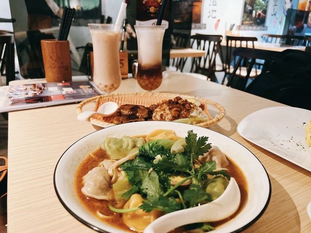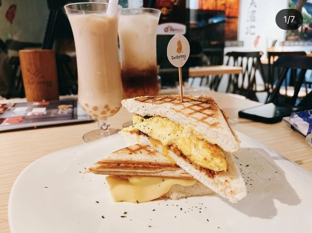 Ha Bean (Kwun Tong) Room A, 3/F, Fu Lee Industrial Building, 6 Jun Yip Lane, Kwun Tong Kwun Tong Industrial Building is always hidden, there are so many excellent authentic and special shops, you really have to go to look for them every now and then, you will be surprised. Today I recommend this super authentic Taiwanese shop The walls of the restaurant are painted with Taiwanese attractions, even the staff speak Taiwanese Mandarin, the atmosphere and environment are super like going to Taiwan. The most important thing is that the food CP value is very high, really like going to Taiwan to eat, the price and food quality / portion are 👍👍 Laced Egg Roll Toast $64 Because the black toast is useless, switched to white toast, but does not affect its appearance, once on the table to see a large piece of cheese in the middle like a landslide, super hearty, bite will eat a burst of Taiwanese fish cake salty flavor, with half-cooked omelet, most importantly its cheese is also very grab out, the whole taste is very rich Three-color dumpling soup noodles $68 There are 3 kinds of dumplings, leek is the most delicious, filling marinated just right, not too salty and not very light, leek flavor is very strong, the other 2 are corn and Korean vegetables are very fresh, soup noodles are beef soup, eat a while of medicinal flavor, then slowly spread beef beef flavor, noodles very Q bouncy, hanging soup power is good Red-broiled beef with chicken wings and stewed pork rice $68 The red-broiled beef is stewed very soft and super seasoned, cut very thick, so soft and still very tasty, chicken wings however not lost, stewed rice is excellent, every bite of rice will eat the fragrance of stewed meat, fat and lean stewed meat to eat completely unburdened, sweet but not greasy, full of gelatin, super recommended Pearl Soy Milk Red Tea +$26 Ordered sugar-free, drink has a very clear bean flavor, very little fresh Bubble Milk Tea +$32 It doesn't feel dead sweet, but has a faint tea aroma #Kwun TongFood #Kwun Tong #Taiwanese #Hadou #SteamedMeatRice #CameraEatFirst #HongKongFood #hkfoodie #hkyummy #taiwanfood #Kwun TongIndustrialBuilding #HongKongFood #HongKongFoodGuide #foodie #hkfoodie #cafe #HongKongFoodRecommendation