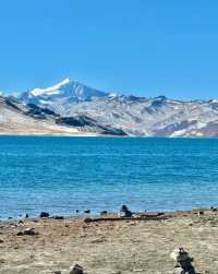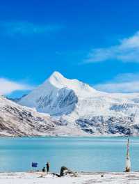 Autumn colors the Basongcuo Lake, with snow-capped mountains and clear waters like a painting.